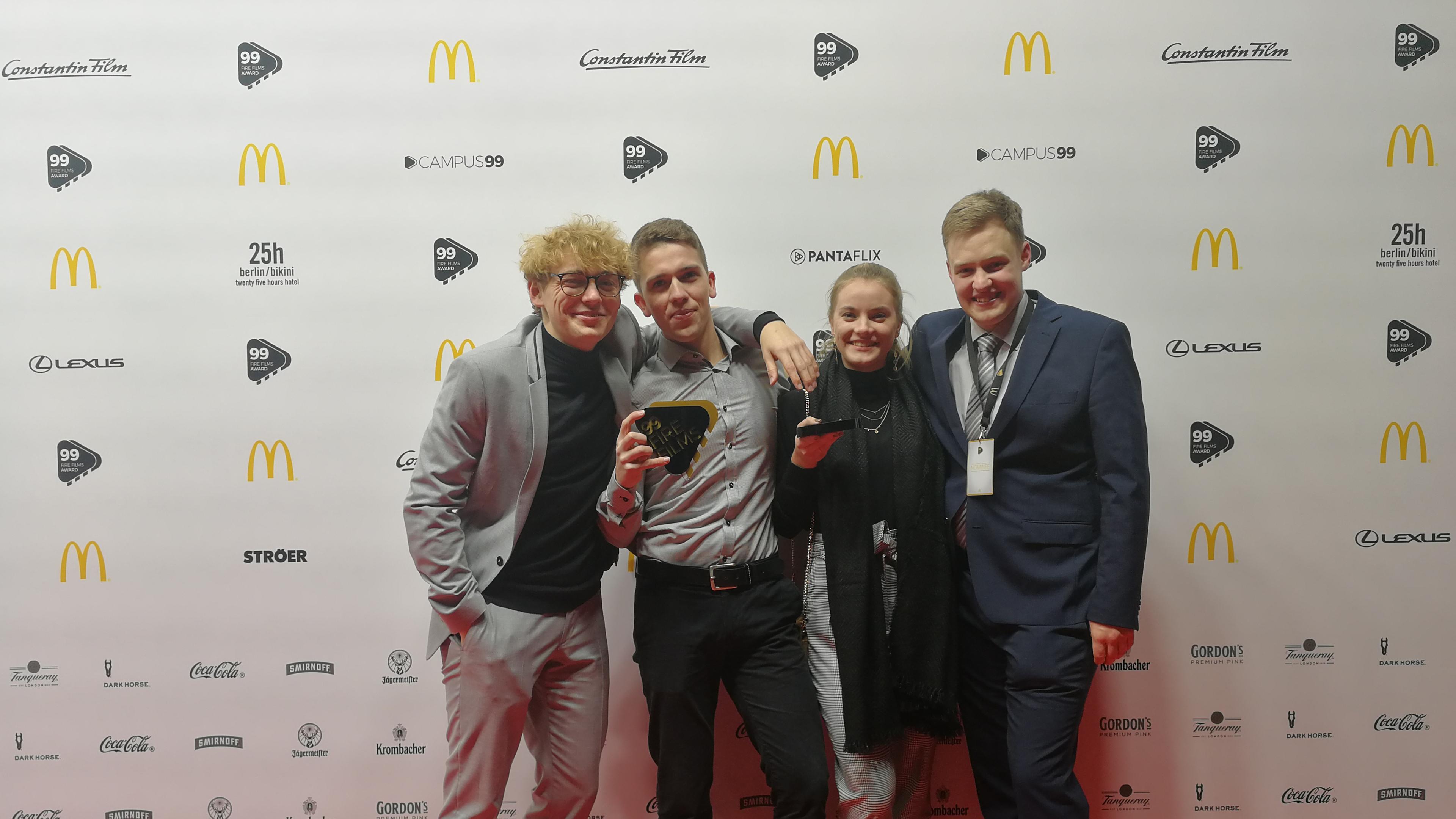 Die auszubildenden Mediengestalter "Bild und Ton" Jannis Vieting (ZDF), Marc-Philip Ginolas (ZDF) und Henrik Weimar (SWR) haben sich beim Kurzfilm-Wettbewerb in Berlin gegen die Profi-Konkurrenz durchgesetzt. Die drei "Hobbyfilmer" haben zum ersten Mal bei dem Kurzfilm-Wettbewerb 99FireFilms Award mitgemacht und auf Anhieb in einer der vier Kategorien gewonnen. Am Mittwochabend erhielten die Mediengestalter im Admiralspalast in Berlin ihre Auszeichnung in der Kategorie "Beste Kamera": Ihr Film 1990 hat sich gegen rund 3121 andere Teilnehmer durchgesetzt und die Jurymitglieder, unter anderem die Schauspieler Ursula Karven und Matthias Schweighöfer, überzeugt.