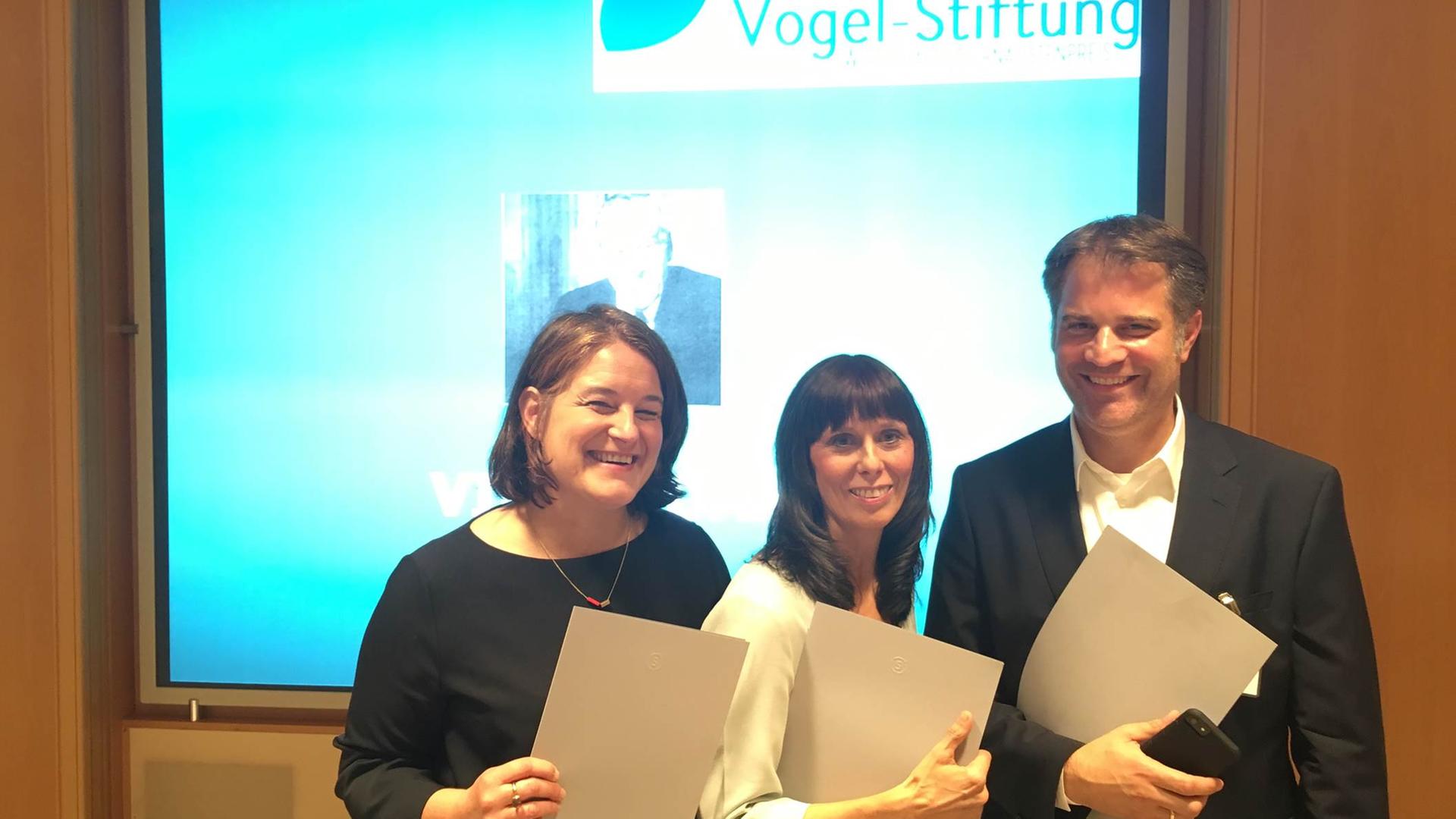 Quelle: ZDF/Tobias Kaufmann @ colourfieldDer Georg von Holtzbrinck-Preis für Wissenschaftsjournalismus ging in diesem Jahr in der Kategorie "Elektronische Medien" an die Terra X-Autoren Freddie Röckenhaus und Petra Höfer (im Juli 2017 verstorben). Ausgezeichnet wurden sie für den Terra X-Dreiteiler Unsere Wälder. Die Preisverleihung fand am 25.10. in Berlin statt. Die Redaktion im ZDF hatten Friederike Haedecke, Johannes Geiger und Katharina Kohl.