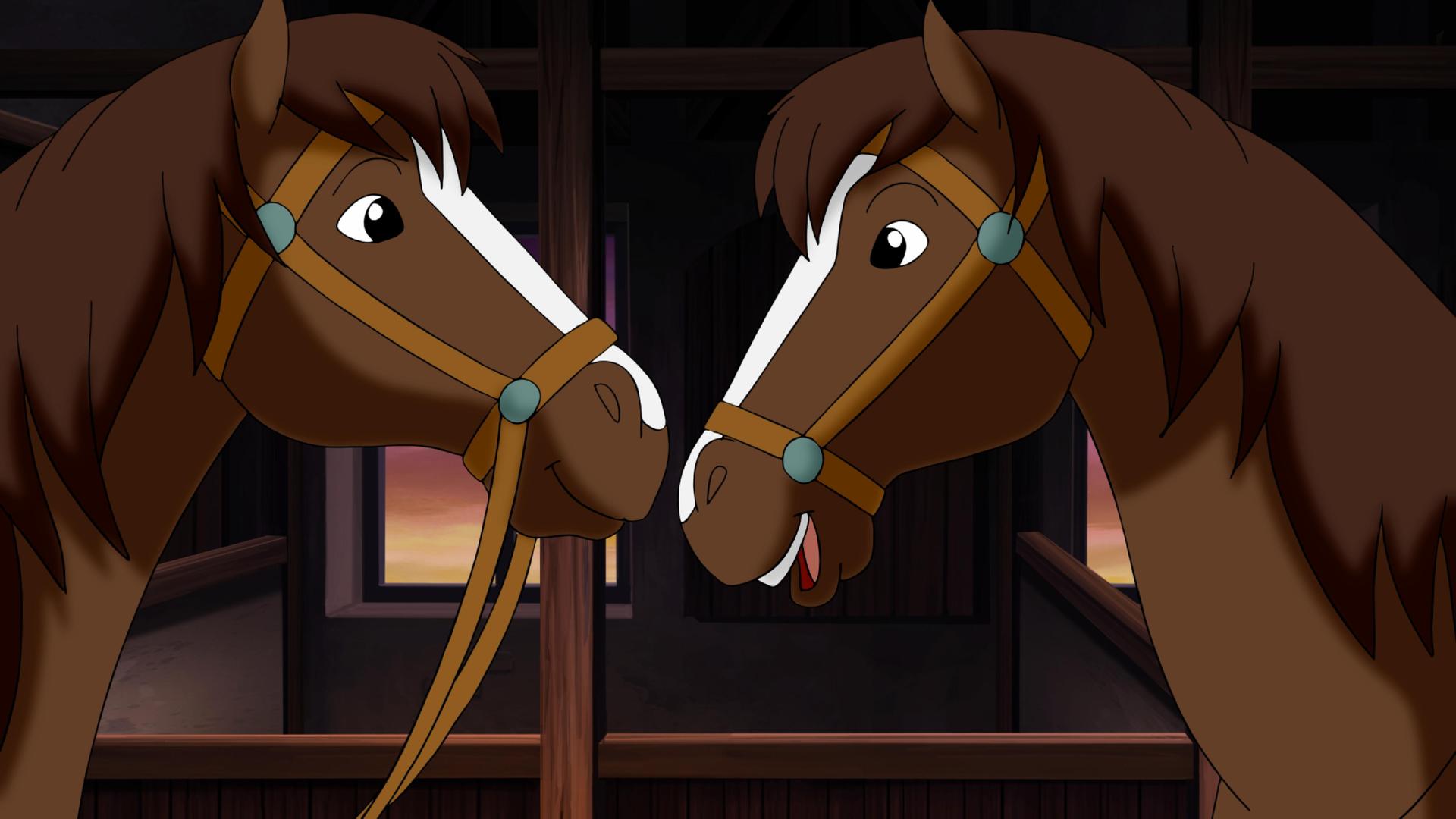 Bibi, Tina und Alex kümmern sich um die Stute Ella und wundern sich: Sie verhält sich ganz anders als gewohnt. Ist Ella etwa ein vertauschtes Zwillingspferd?