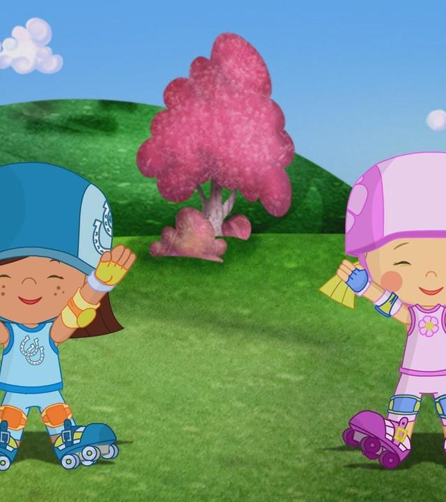 Zoé, Carla und QuackQuack trainieren heute eine Schildkröte, die beim Rollschuhwettrennen gegen einen Hasen immer verliert.