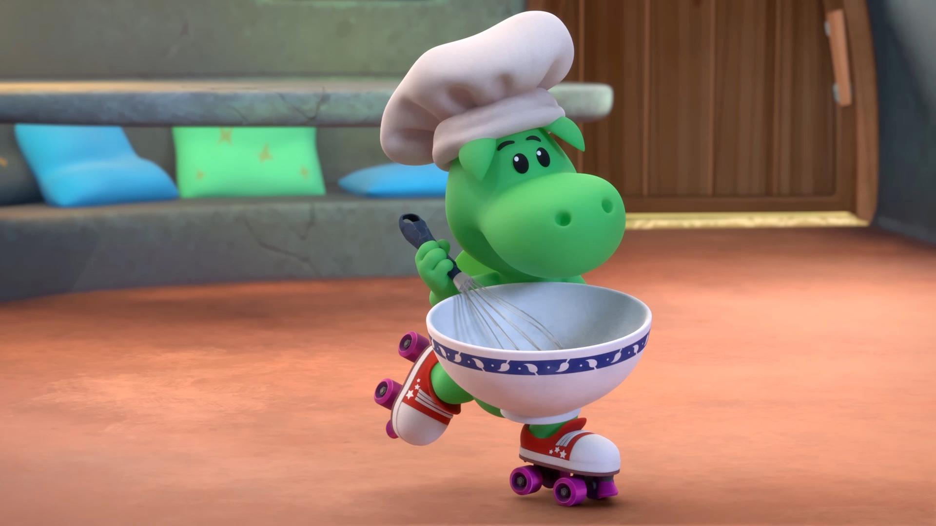 Zum 10-jährigen Dienstjubiläum von David soll es eine große Torte geben. Aber Fumé zermatscht unabsichtlich den Kuchen. Jetzt ist Grisu gefragt.
