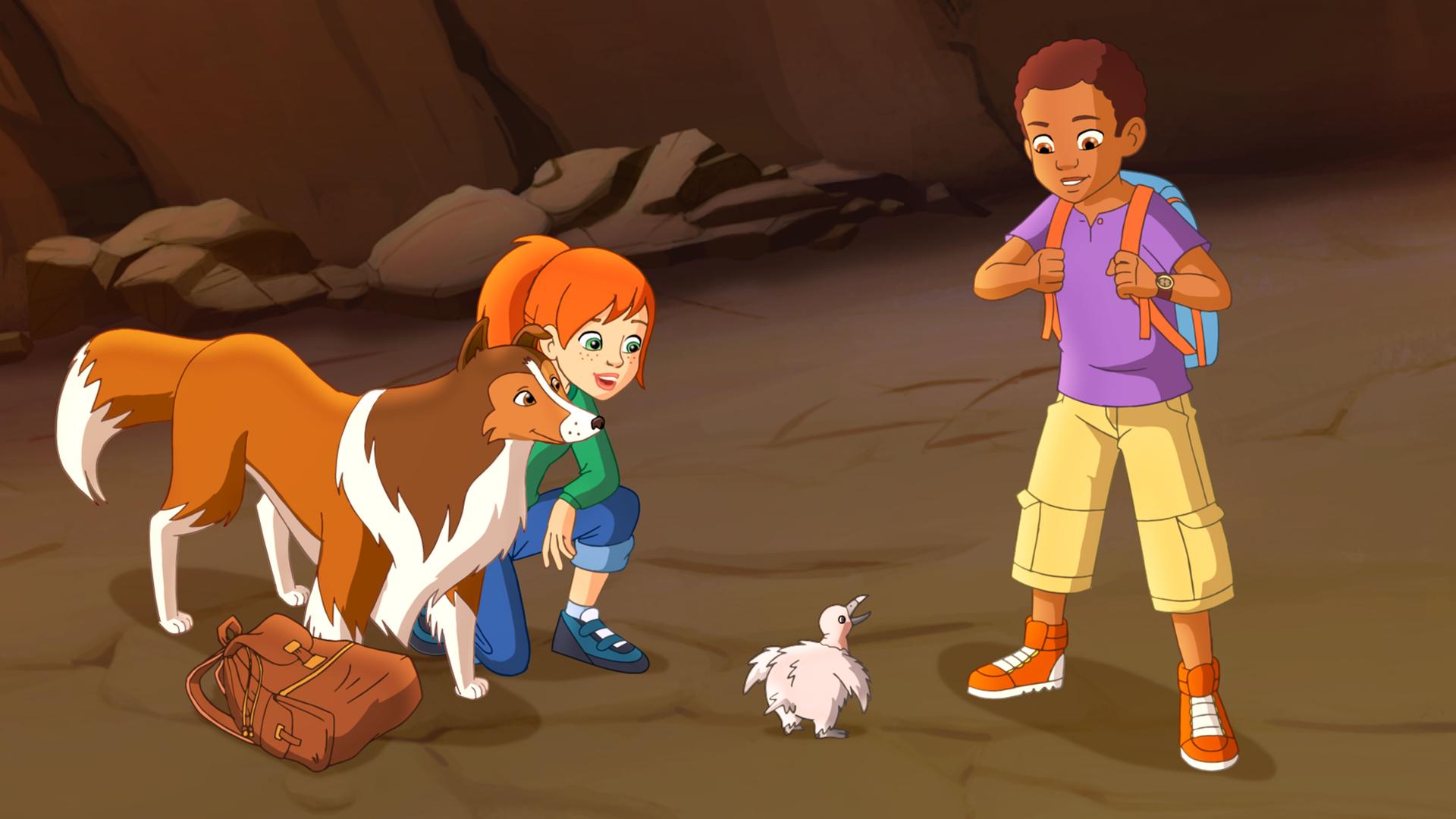Zoé und Harvey schleppen einen verletzten Kondor in die Tierrettungsstation. Als Lassie ihnen signalisiert, dass im Nest ein Kondorjunges zurückgeblieben ist, gehen sie zurück.