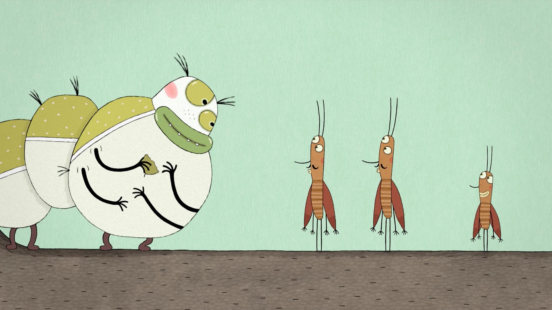 Eine dicke Raupe entdeckt Käfer, die wunderbar tanzen. Die Raupe möchte mittanzen. Doch die Käfer machen sich lustig über das plumpe Tier.