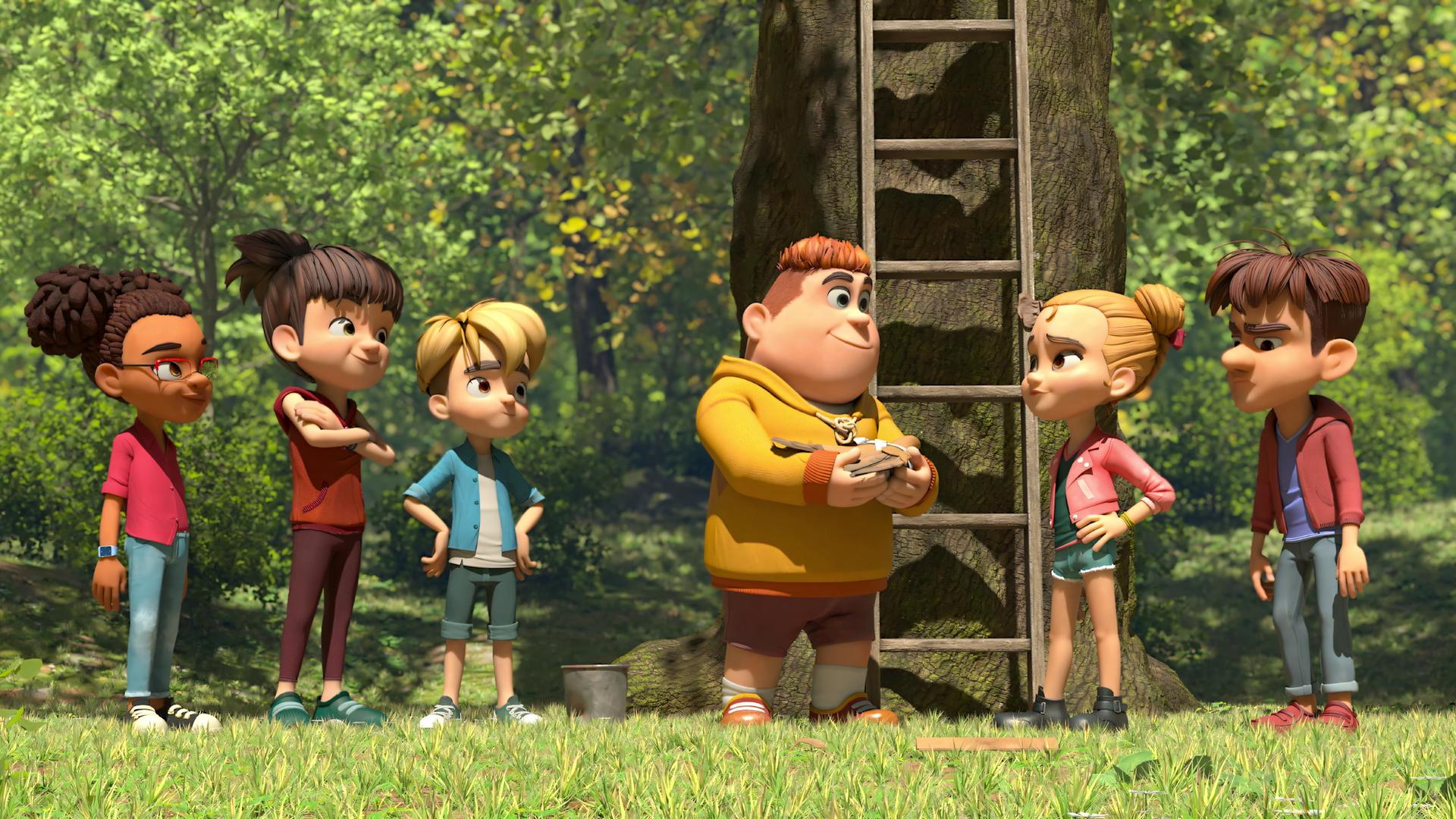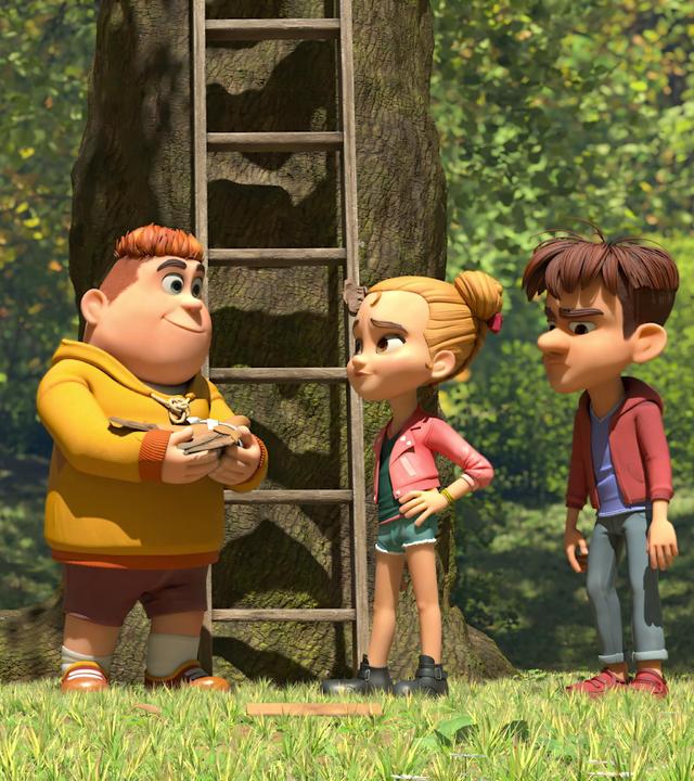 Im Wald entdecken Raphael, Bohnenstange und Lina ein verletztes Rebhuhn in einer Falle. Sie verarzten es im Baumhaus. Samson ist dabei, obwohl er kein Mitglied der Dorfbande ist.