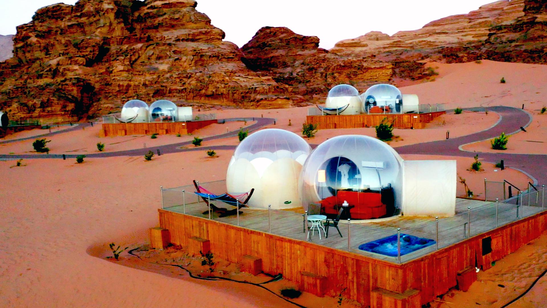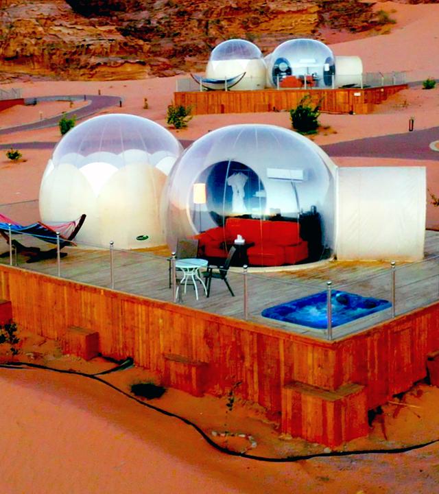 In Ecuador findet sich eine Lodge, die inmitten von Tausenden Hektar Regenwald liegt. Welche Herausforderungen bergen die Lage und das Klima für die Betreiber? Ähnlich in Jordanien, das "Bubble Hotel" liegt mitten in der Wüste. Die transparenten Kuppeln ähneln Raumschiffen und laden zum Verweilen ein.