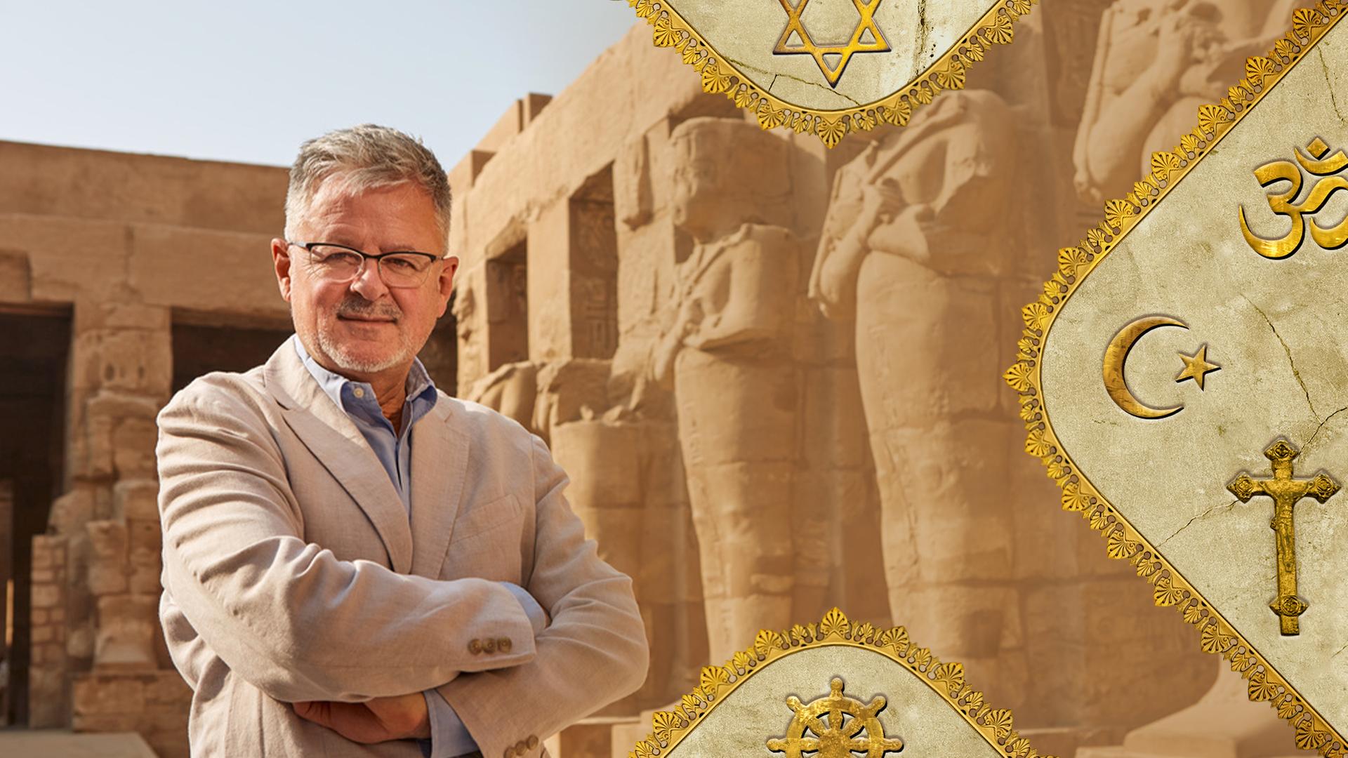 Auf Reisen nach Afrika, in den Nahen Osten und nach Asien besucht Christopher Clark Gläubige, Religionsgelehrte und Kultstätten. Er gewinnt tiefe Einblicke in die Religion der Pharaonen, der Hindus und Buddhisten. Fachleute wie der Prähistoriker Hermann Parzinger unterstützen ihn auf seiner Suche. Dabei zeigt sich unter anderem, inwiefern die Konzentration auf einen einzigen Gott mit weltlicher Macht zusammenhängt.