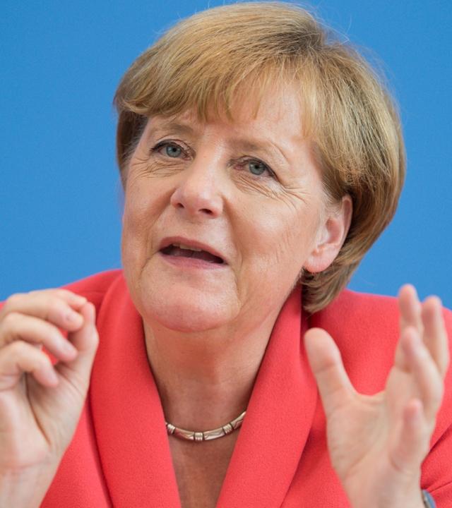 31.08.15: Bundeskanzlerin Angela Merkel, CDU, verlangt im Umgang mit Flüchtlingen klare Grundsätze, die dem Grundgesetz entstammen: Das Recht auf Asyl und auf Menschenwürde.