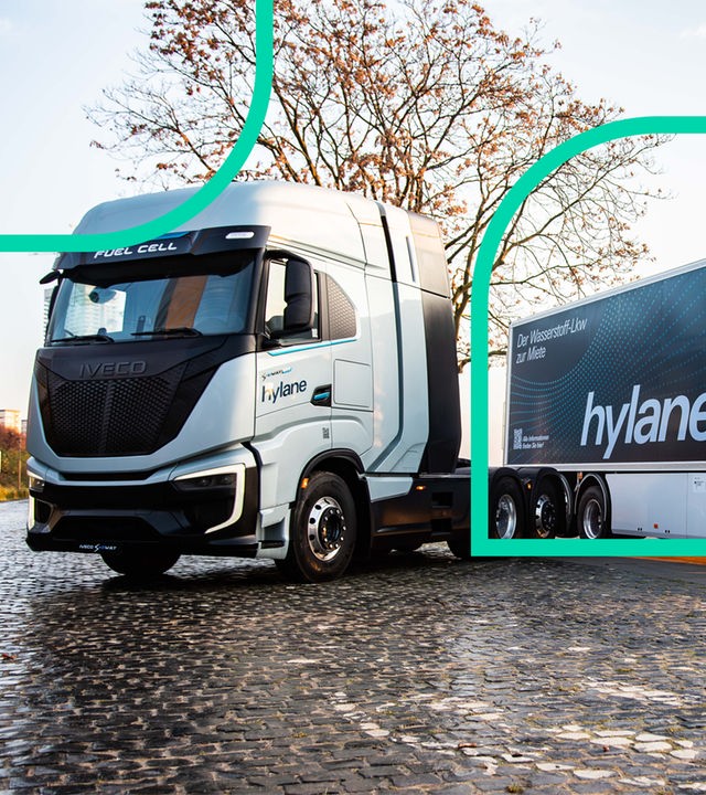 Die 31-jährige Sara Schiffer ist fest entschlossen, den Straßengüterverkehr grüner zu machen. "Wir wollen bis 2045 klimaneutral sein, und das geht nur, wenn wir alle technologischen Möglichkeiten ausschöpfen", sagt sie. Ihre Lkws fahren mit Wasserstoff. Sie werden gemietet - bezahlt wird nur die gefahrene Strecke, etwa ein Euro pro Kilometer.