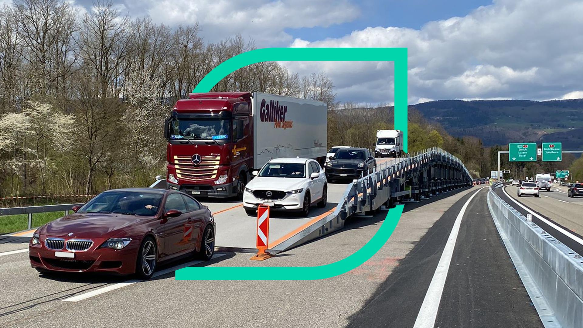 Mit der Sanierung von Autobahnen verbinden die meisten Menschen Straßensperrungen und Staus. Für die Bauarbeiter bedeuten die Arbeiten auf der verengten Fahrbahn ein höheres Sicherheitsrisiko. Jürg Merian vom schweizerischen Bundesamt für Straßen war selbst lange Baustellenleiter und hatte irgendwann die zündende Idee: eine mobile Brücke.