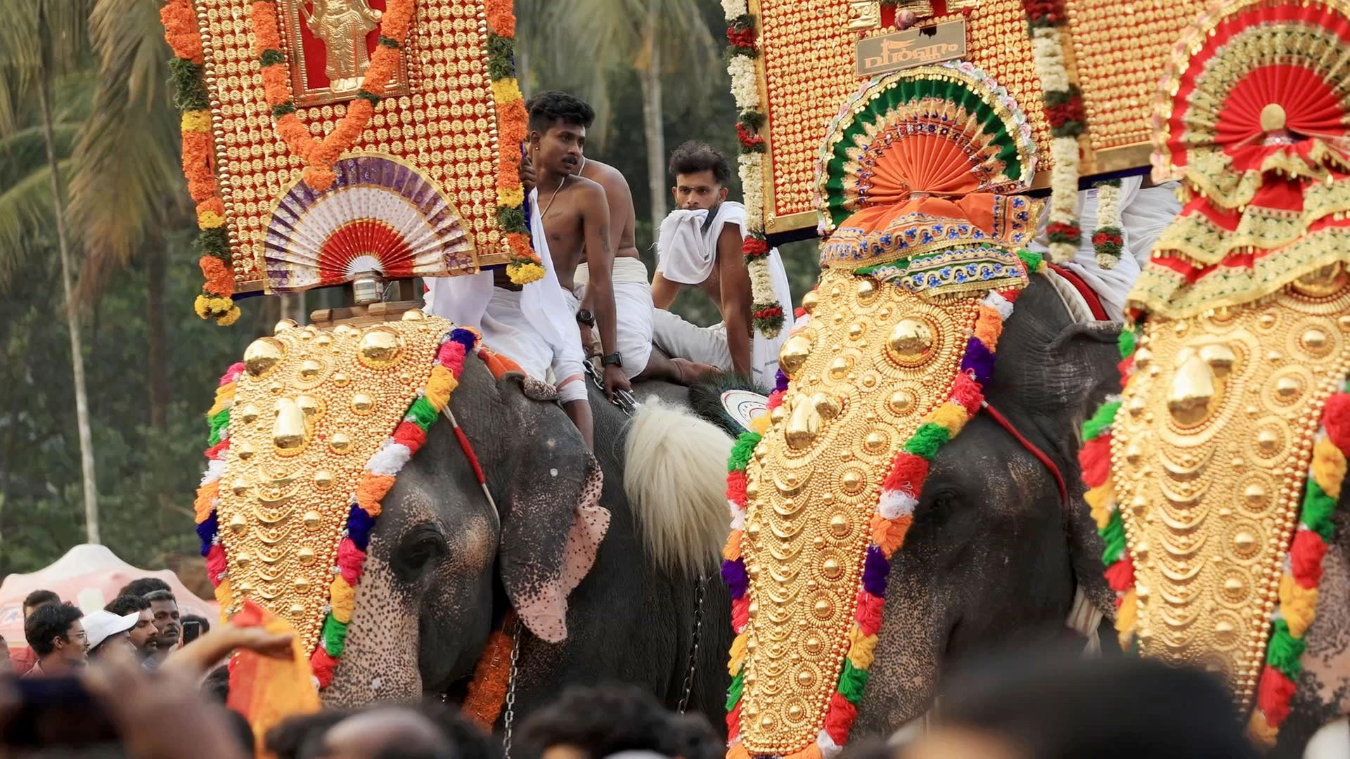 Die Reise beginnt in Thrissur, Schauplatz des über 200-jährigen Elefanten-Festivals Thrissur Puram. Höhepunkt des Events ist die Prozession der prachtvoll geschmückten Dickhäuter – ein bei Tierschützern nicht unumstrittenes Spektakel.