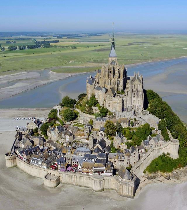 Auch "La Merveille", "das Wunder", genannt, ragt der Mont-Saint-Michel in einer scheinbar endlosen Bucht über 150 Meter in die Höhe. Die meisterhafte Abtei und uneinnehmbare Festung zählt zu den kostspieligsten und schwierigsten Bauprojekten des Mittelalters. Die Gezeiten in der Bucht des Mont-Saint-Michel gehören zu den stärksten ganz Europas.