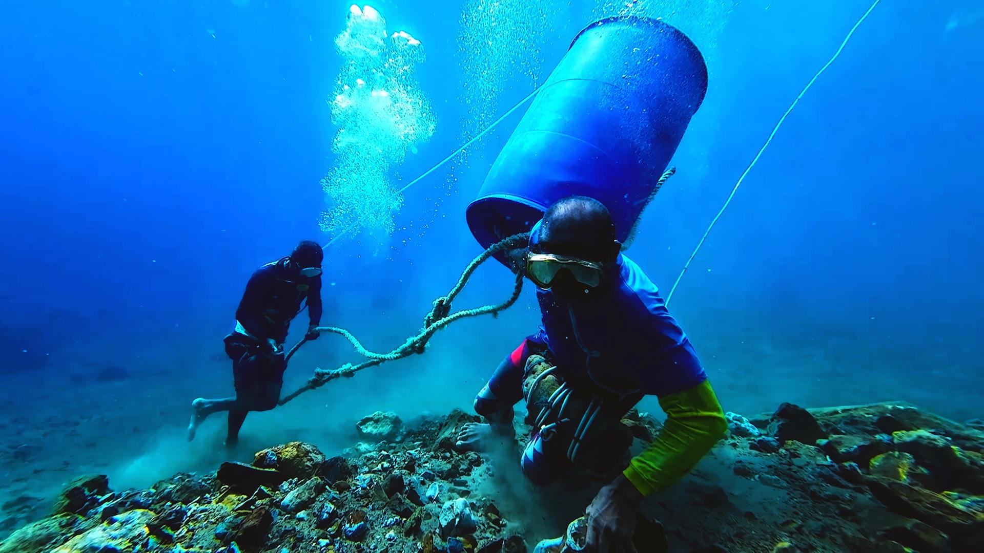 Im Dorf Pinut-an auf der Insel Panaon gibt es ein anderes Problem: Fast die gesamte Bevölkerung ist am illegalen Goldabbau beteiligt. Sie schürfen auf dem Meeresgrund nach dem Edelmetall. Schon seit der Kolonialzeit gilt die Insel als Unterwasser-Eldorado. Doch die Arbeit birgt viele Gefahren, nicht nur für die Umwelt. Die Taucher riskieren jedes Mal den Tod, wenn sie unter Wasser in den selbst angelegten Tunneln nach Gold suchen.