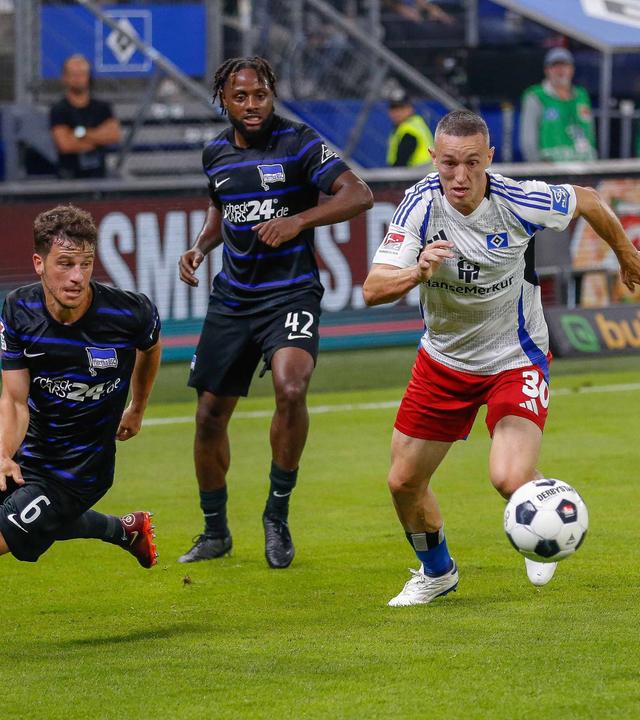 Auch nach der Pause kontrollierten die Hamburger zunächst das Geschehen. Die Berliner steckten aber nie auf. So blieb es bis zum Ende spannend. Linus Gechter (58.) hatte Pech, als er nur den Pfosten des HSV-Tores traf - die bis dahin beste Hertha-Chance zum Ausgleich.