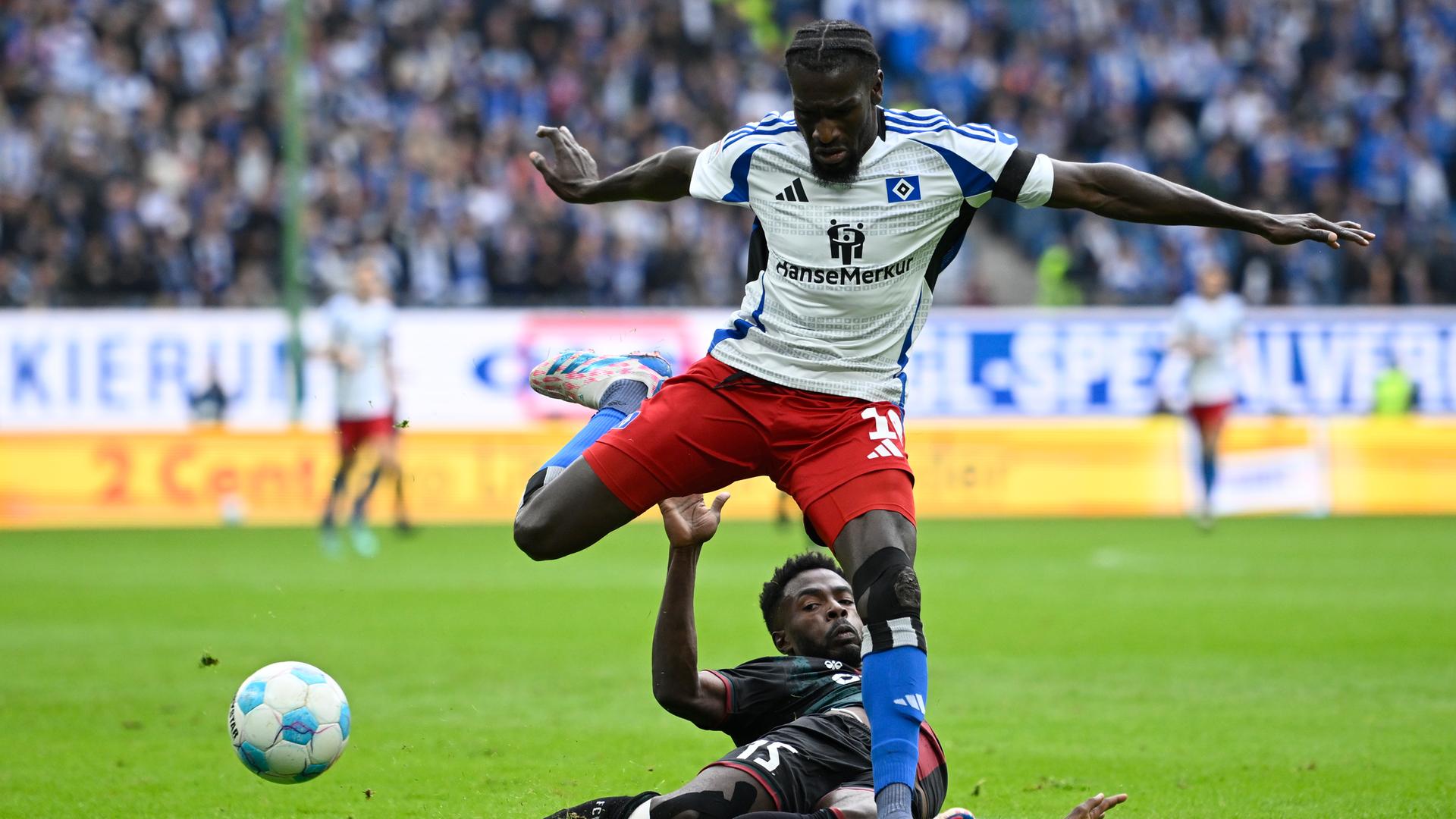 Vor 57.000 Zuschauern sorgten die Tore von Ransford-Yeboah Königsdörffer (5. Minute), Noah Katterbach (42.) und Davie Selke (45.+1) für eine scheinbar sichere Hamburger Pausenführung. Doch trotz der besten HSV-Halbzeit dieser Saison drohte die Partie noch einmal zu kippen. Denn HSV-Kapitän Sebastian Schonlau sah für eine Notbremse die Rote Karte (57.). Kurz darauf brachte Martijn Kaars die Magdeburger per Foulelfmeter wieder heran (63.).
