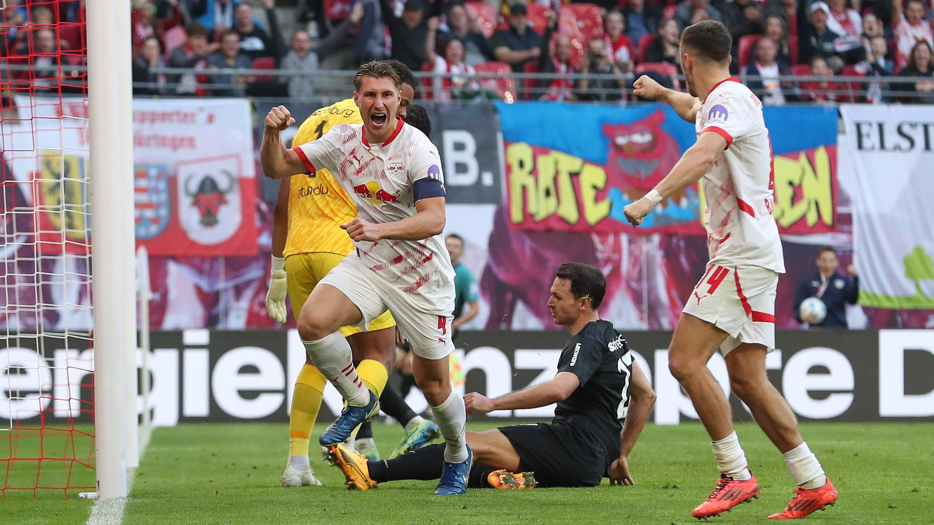 Die zweite Spielhälfte startete nach Maß für die Leipziger, Kapitän Willi Orban (47.) tunnelte den Ball nach einer Henrichs-Flanke mit der Fußspitze durch Höfler hindurch ins Tor zum Ausgleich.