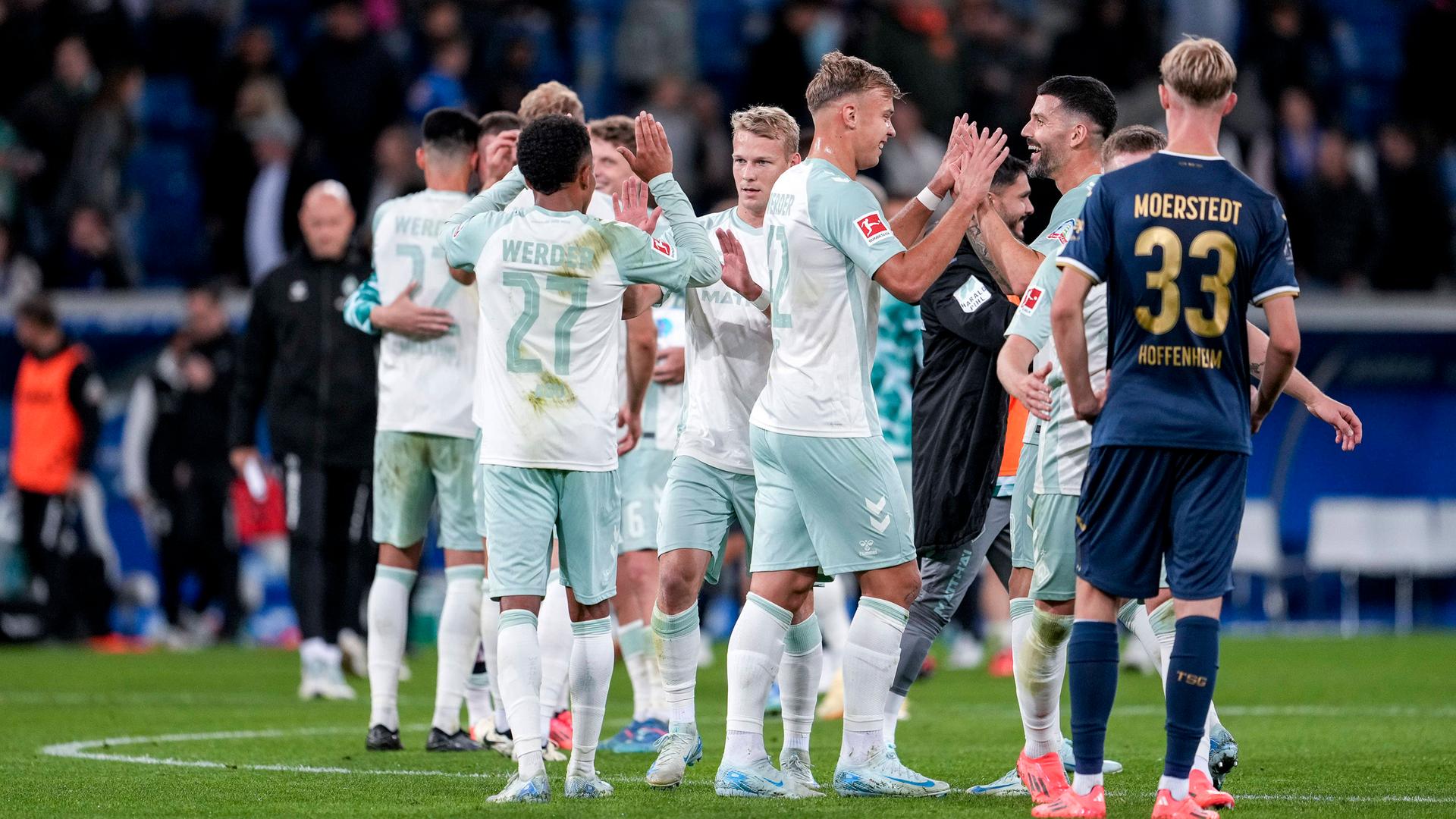 Knackpunkt der Partie war die Rote Karte für Hoffenheims Stanley Nsoki wegen einer Notbremse in der 18. Minute. Marius Bülter per Doppelpack (5./8.) und Adam Hlozek (12.) hatten die Gastgeber vor 26.018 Zuschauerinnen und Zuschauern in Sinsheim klar in Führung gebracht. Julián Malatini (21.) und Stage (26./39.) glichen noch vor der Pause für Werder aus. Kurz nach dem Seitenwechsel sorgte erneut Stage (49.) für Bremens zweiten Auswärtssieg nacheinander.