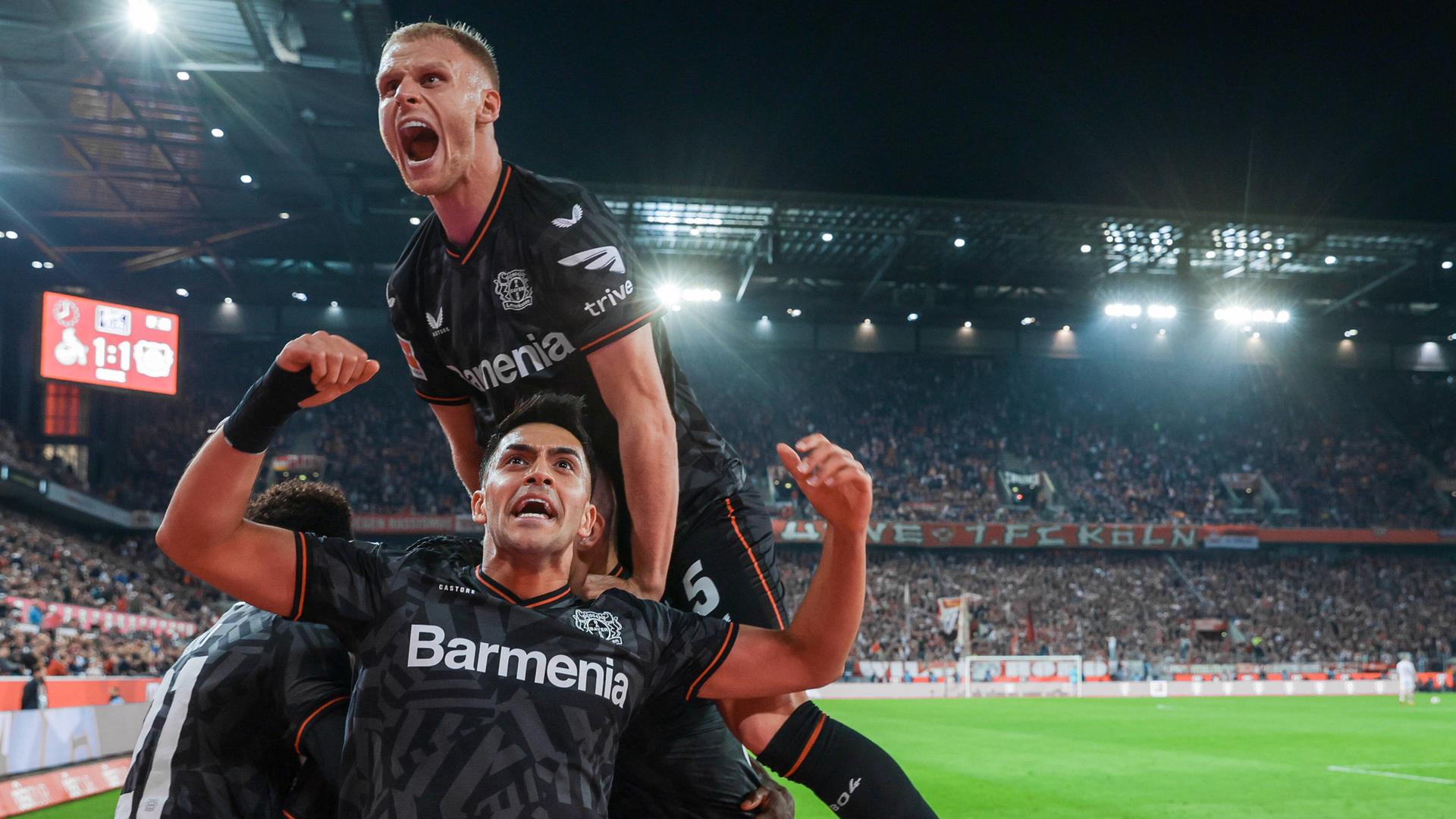 Bayer Leverkusen gewinnt nach dem Befreiungsschlag gegen Union auch beim 1. FC Köln. Nach einem spektakulären Treffer für den Effzeh haben die Gäste zweimal die passende Antwort.
