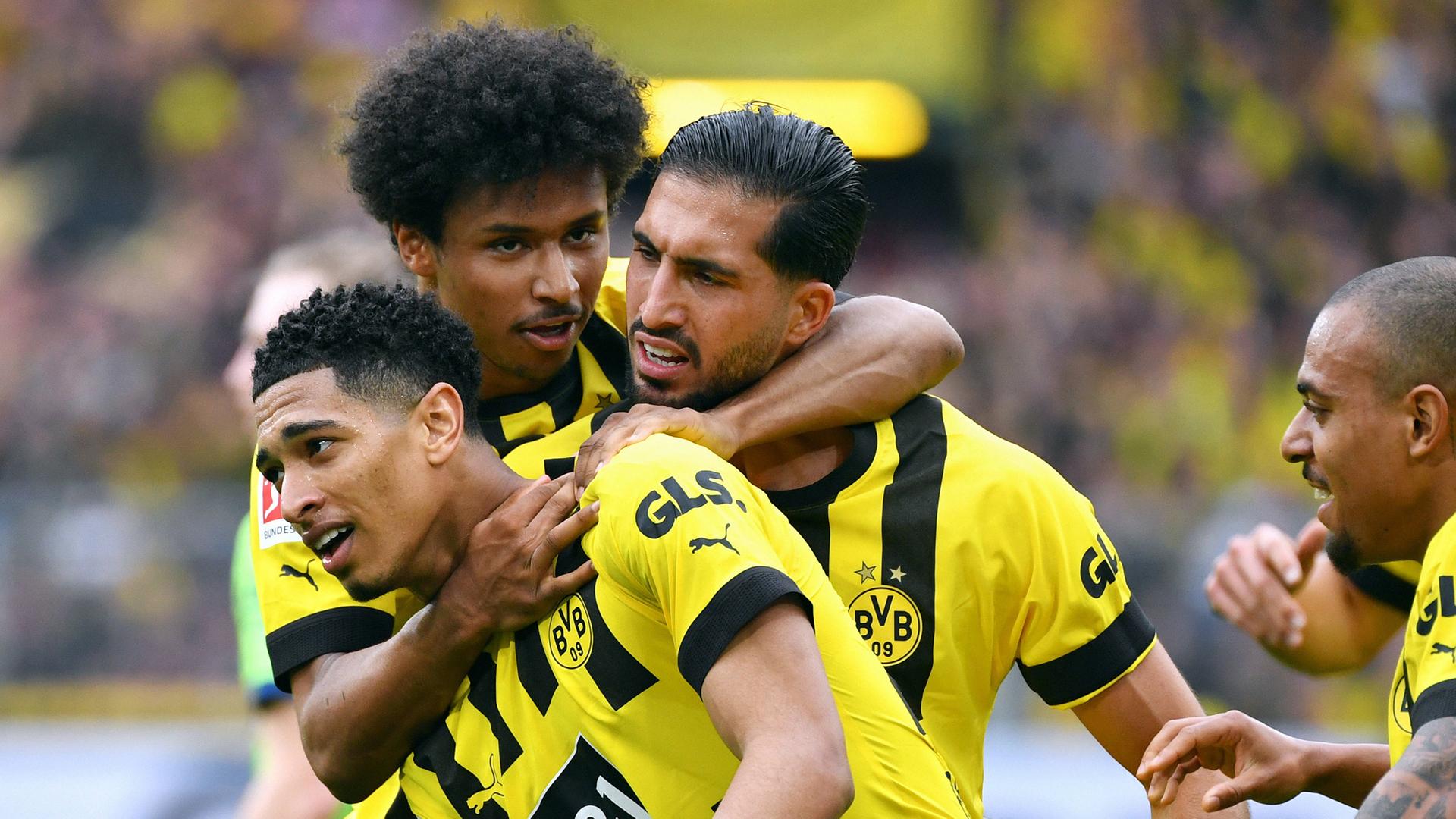 Dass der überragende Angreifer fünf Minuten später einen Foulelfmeter über das Tor schoss, konnte der BVB angesichts der deutlichen Führung verschmerzen. Den Schlusspunkt setzte Bellingham mit seinem zweiten Tor (86.). Dortmund hält sich somit im Titelkampf, muss bei noch drei ausstehenden Spielen aber weiter auf einen Patzer des Titelverteidigers aus München hoffen. Wolfsburg verpasste dagegen nach zuvor zwei Siegen den Sprung in die Europacup-Ränge.
