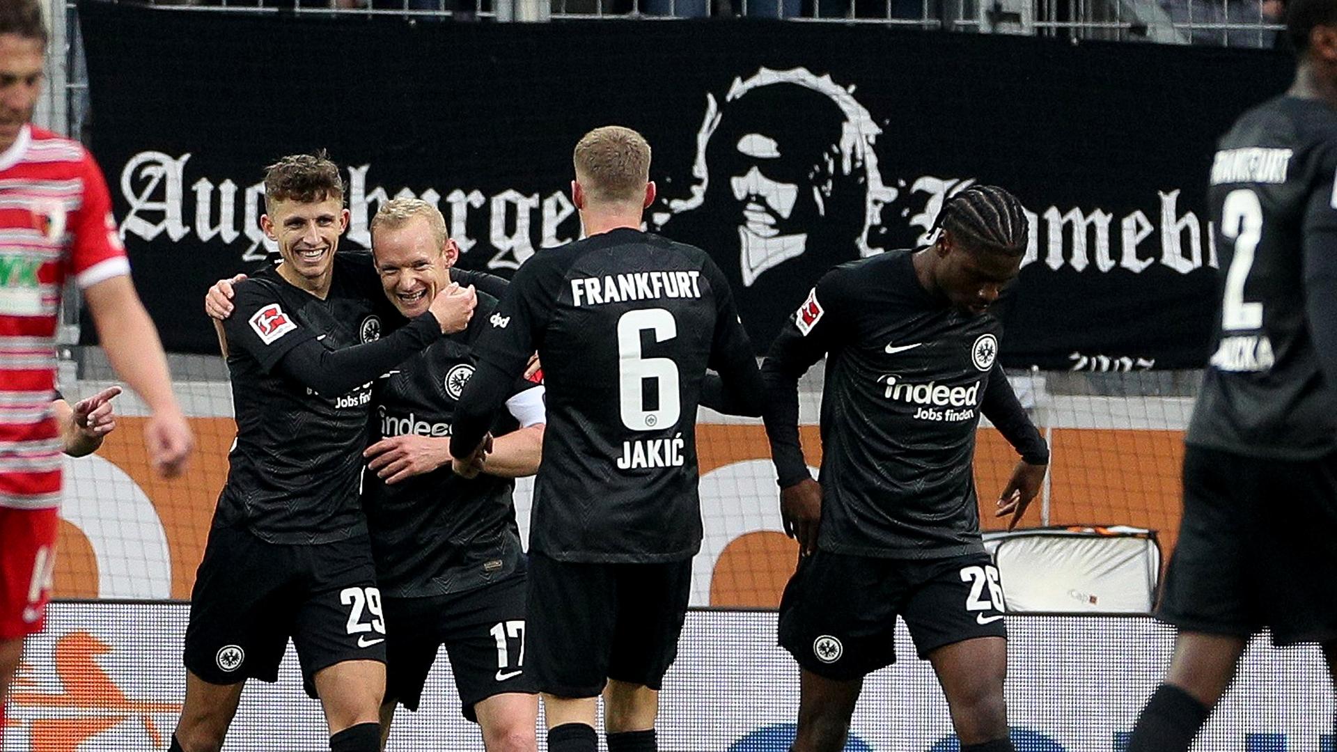 Eintracht Frankfurt hat noch einem frühen Rückstand doch noch einen 2:1-Auswärtssieg beim FC Augsburg gefeiert. Mergim Berisha traf bereits nach 35 Sekunden für Augsburg. Die Führung wehrte aber nicht allzu lang, Sebastian Rode erzielte noch in der ersten Viertelstunde den Ausgleichstreffer. Der zur zweiten Halbzeit eingewechselte Ansgar Knauff traf in Halbzeit zwei dann zum Sieg der Eintracht.
