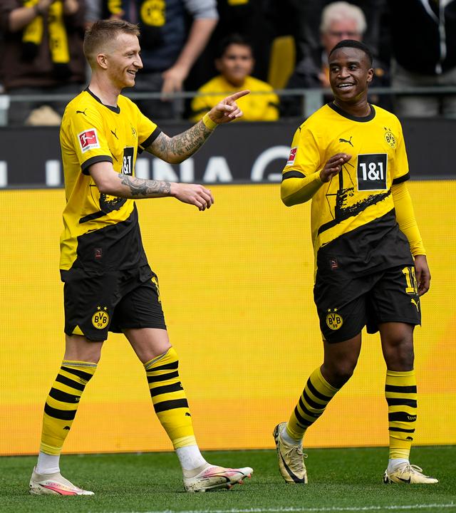 Der höchste Saisonsieg von Borussia Dortmund in der Fußball-Bundesliga ist zur großen Jubelshow für Marco Reus geworden. Beim 5:1 (4:1) gegen den erschreckend schwachen FC Augsburg wurde der im Sommer nach zwölf Jahren scheidende Ex-Kapitän überschwänglich gefeiert. Einen Tag nach seinem angekündigten Abschied hatte der 34 Jahre alte Ex-Nationalspieler mit einem Tor (34. Minute) und zwei Torvorlagen entscheidenden Anteil am Sieg.
