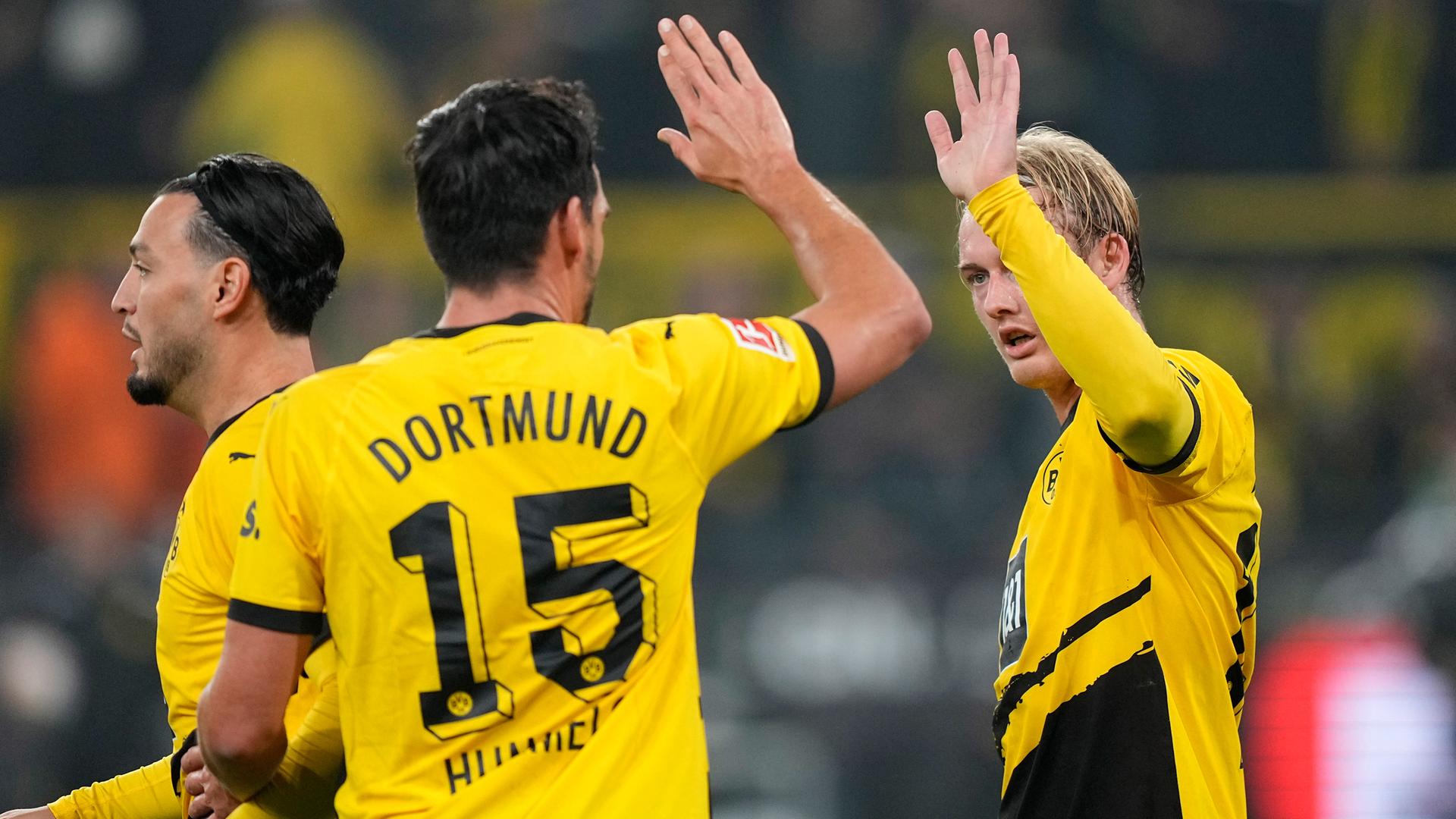 Borussia Dortmund: Kobel - Wolf (62. Bensebaini), Hummels, Schlotterbeck, Ryerson - Can, Felix Nmecha - Malen (76. Sabitzer), Reus (62. Reyna), Brandt (90. Adeyemi) - Füllkrug (77. Haller)