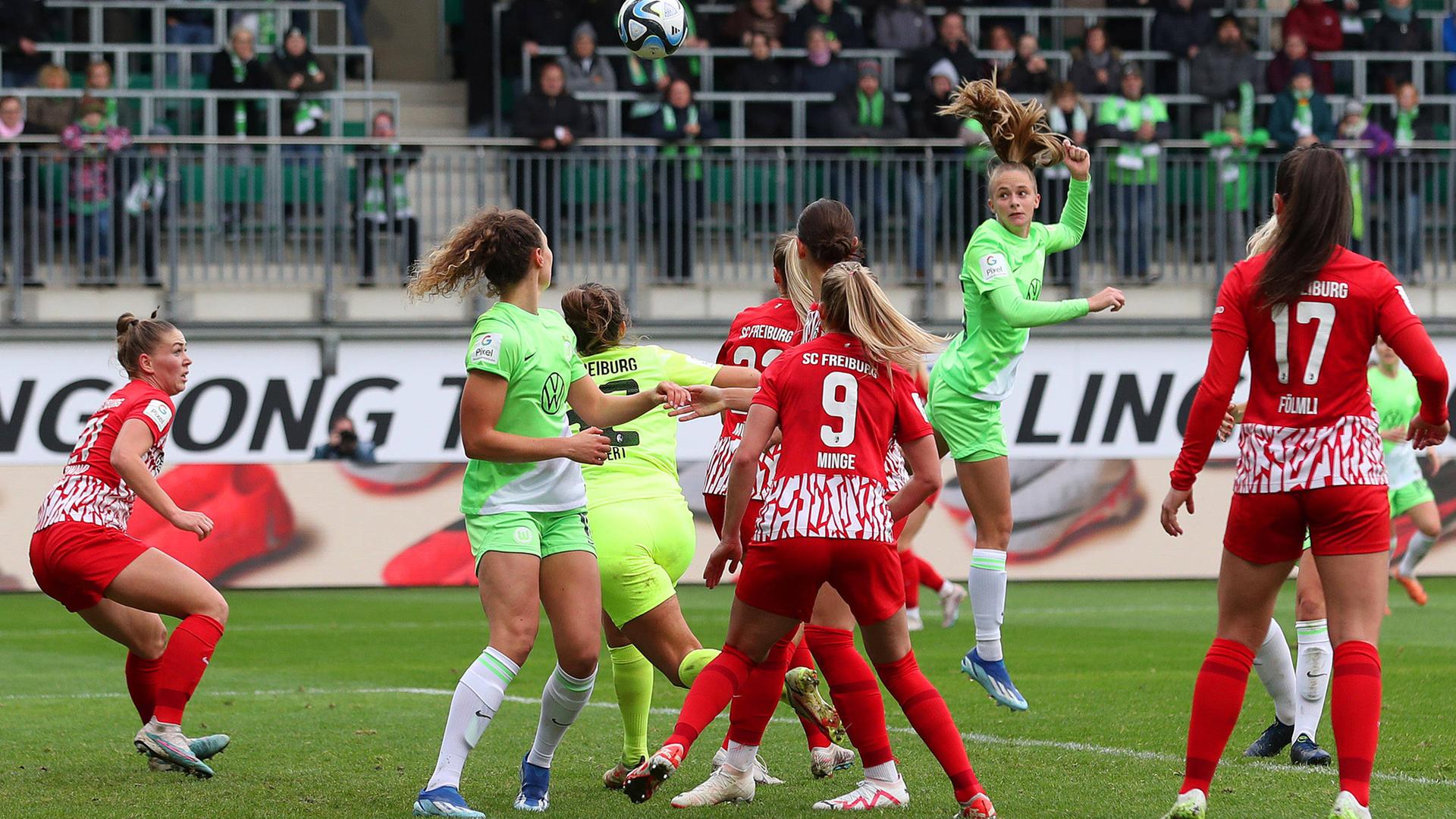 Klare Sache für die Wolfsburger Fußballerinnen: Gegen Freiburg landen sie zu Hause einen 4:0-Sieg. Ewa Pajor trifft zwei Mal, den Rest erledigen Vivien Endemann und Lena Lattwein.