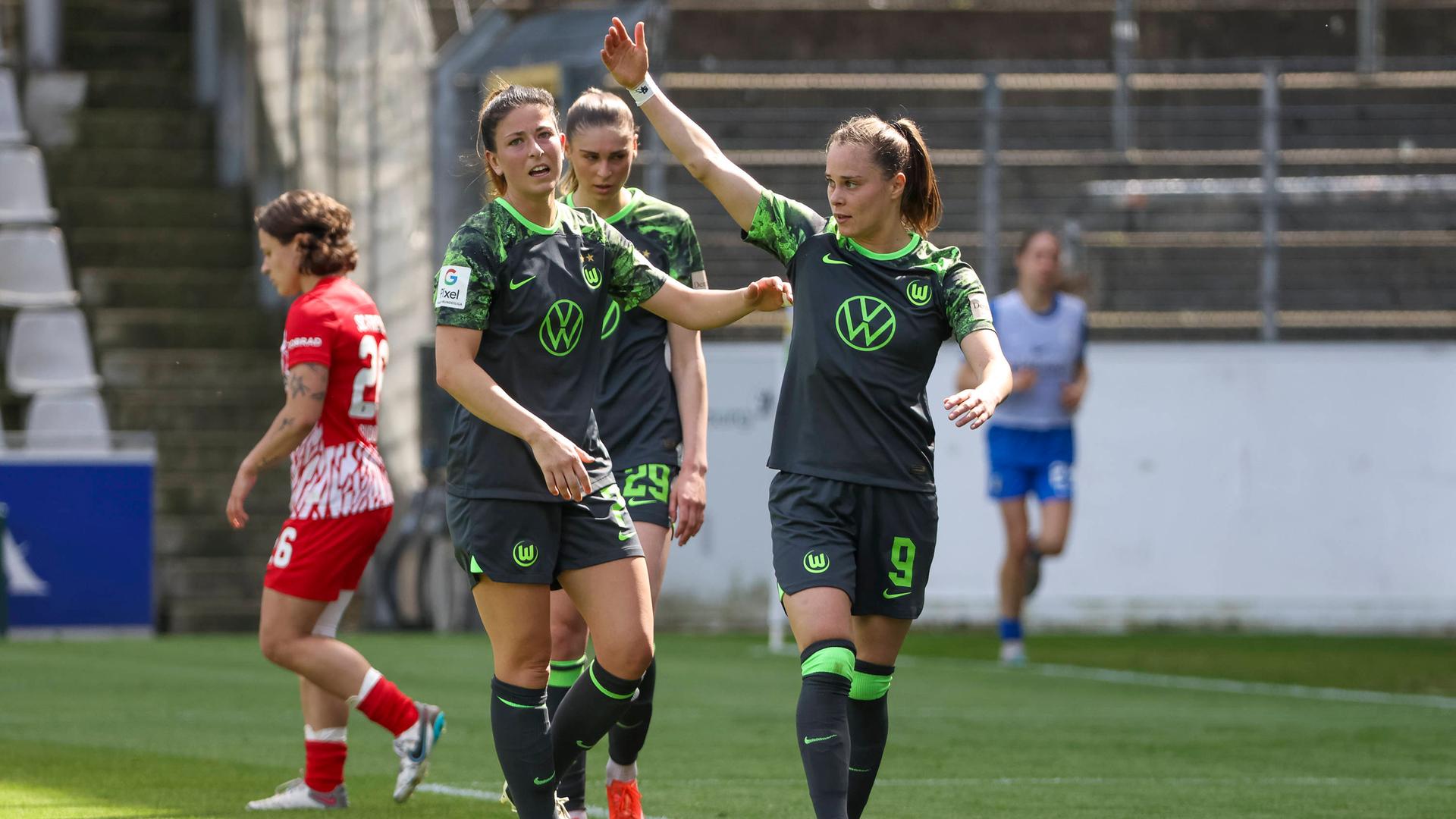 Mit drei Toren in sieben Minuten hat der VfL Wolfsburg in der Frauen-Bundesliga in Freiburg frühzeitig für klare Verhältnisse gesorgt. Am Ende siegte der Verfolger mit 4:1 (3:0).