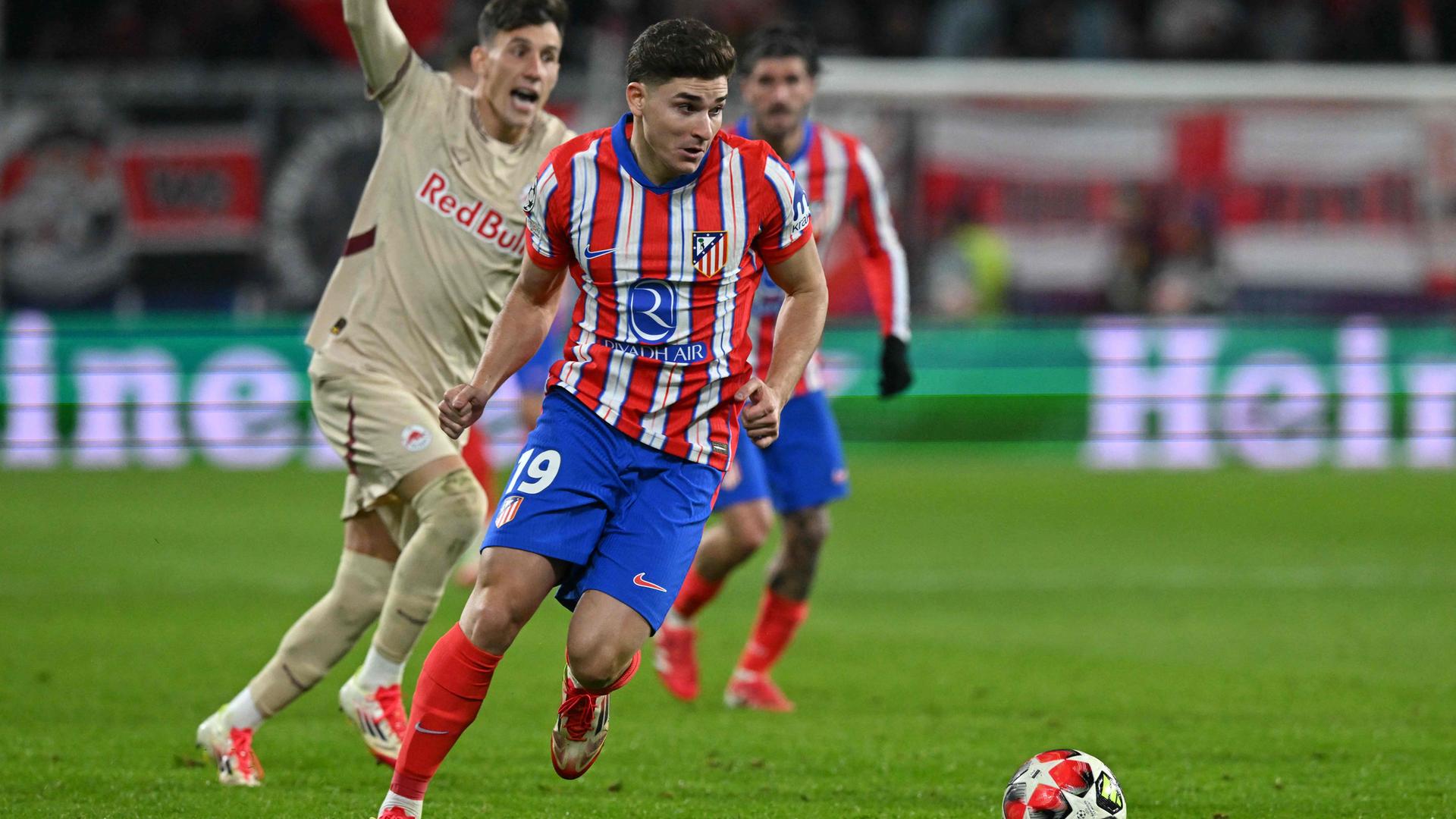 Julian Alvarez (19), argentinischer Stürmer von Atletico Madrid, kontrolliert den Ball.