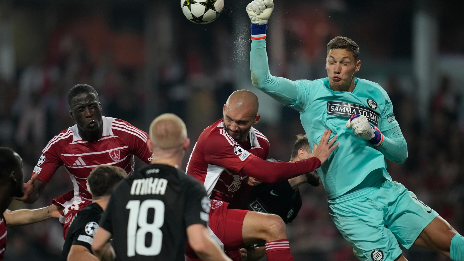 Erstes Champions-League-Spiel, gleich ein Sieg: Stade Brest schlägt Sturm Graz 2:1. Mit dem gleichen Ergebnis gewinnt Benfica gegen Roter Stern. Enthält virtuelle Bandenwerbung