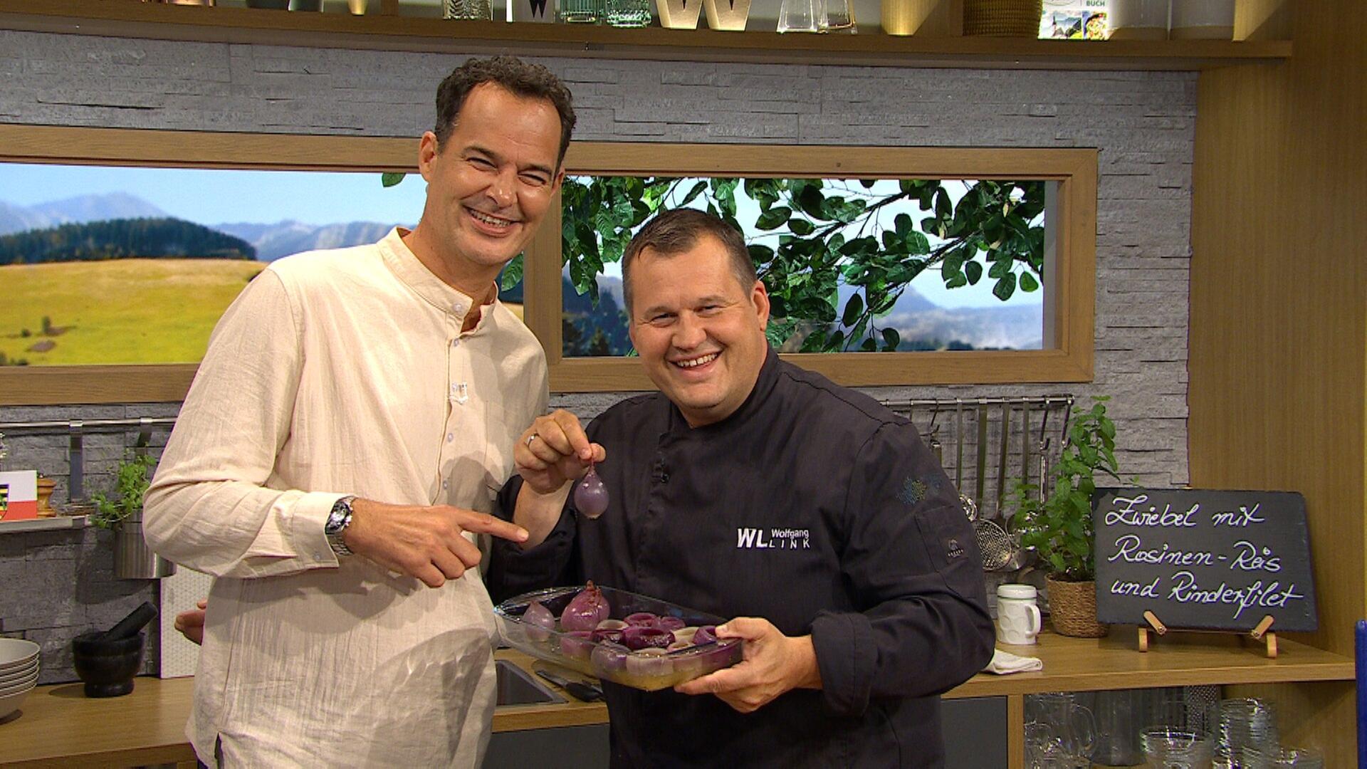 Zu Gast sind Beate Roth, Melanie und Martin Ebert. Außerdem erklärt Allgemeinarzt Dr. Klaus Tiedemann, welche fünf Medikamente im Sommer in jede Reiseapotheke gehören. Und Wolfgang Link macht gefüllte Zwiebel mit Rosinen-Reis und Rinderfiletwürfel.