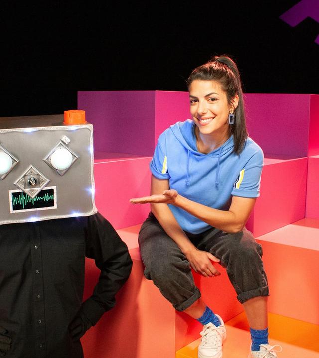 Diese Folge von "Wissen macht Ah!" kümmert sich um Menschen und Maschinen. Wie zum Beispiel bei Clarissa, die einen neuen Kollegen im Studio begrüßt. Was ist das denn? Die Sendung geht gleich los, doch die Einzige, die pünktlich im Studio steht, ist Clarissa. Plötzlich fängt auch noch der blinkende Kasten neben ihr an zu sprechen. Das Ding behauptet, heute ihr intelligenter Kollege zu sein. Doch was kann dieses geheimnisvolle Gerät alles? Die Folge gibt Antworten auf die Fragen: Was ist ein Bot? Wie funktioniert die Gesichtserkennung zur Entsperrung von Smartphones? Seit wann gibt es Roboter? Wo ist die Cloud, in der meine Daten landen?