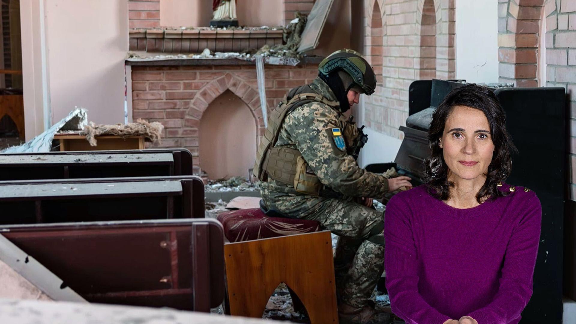In einer Kirche im zerstörten Bachmut sitzt ein uniformierter Militärgeistlicher am Klavier. Die Figur des Soldaten, der sich einen Moment lang der Musik hingibt, ist ein Klassiker der Kriegsfotographie. Doch welche Geschichte steckt hinter diesem Foto?