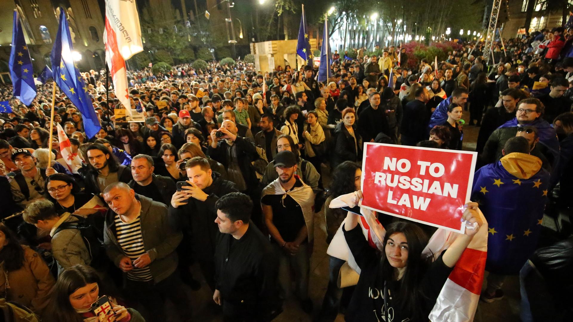 Im georgischen Parlament ist es während einer Debatte zu einem umstrittenen Gesetzesentwurf zu einer Prügelei zwischen mehreren Abgeordneten gekommen. Zuvor haben tausende Menschen gegen das Gesetz über sogenannte „ausländische Agenten“ protestiert.