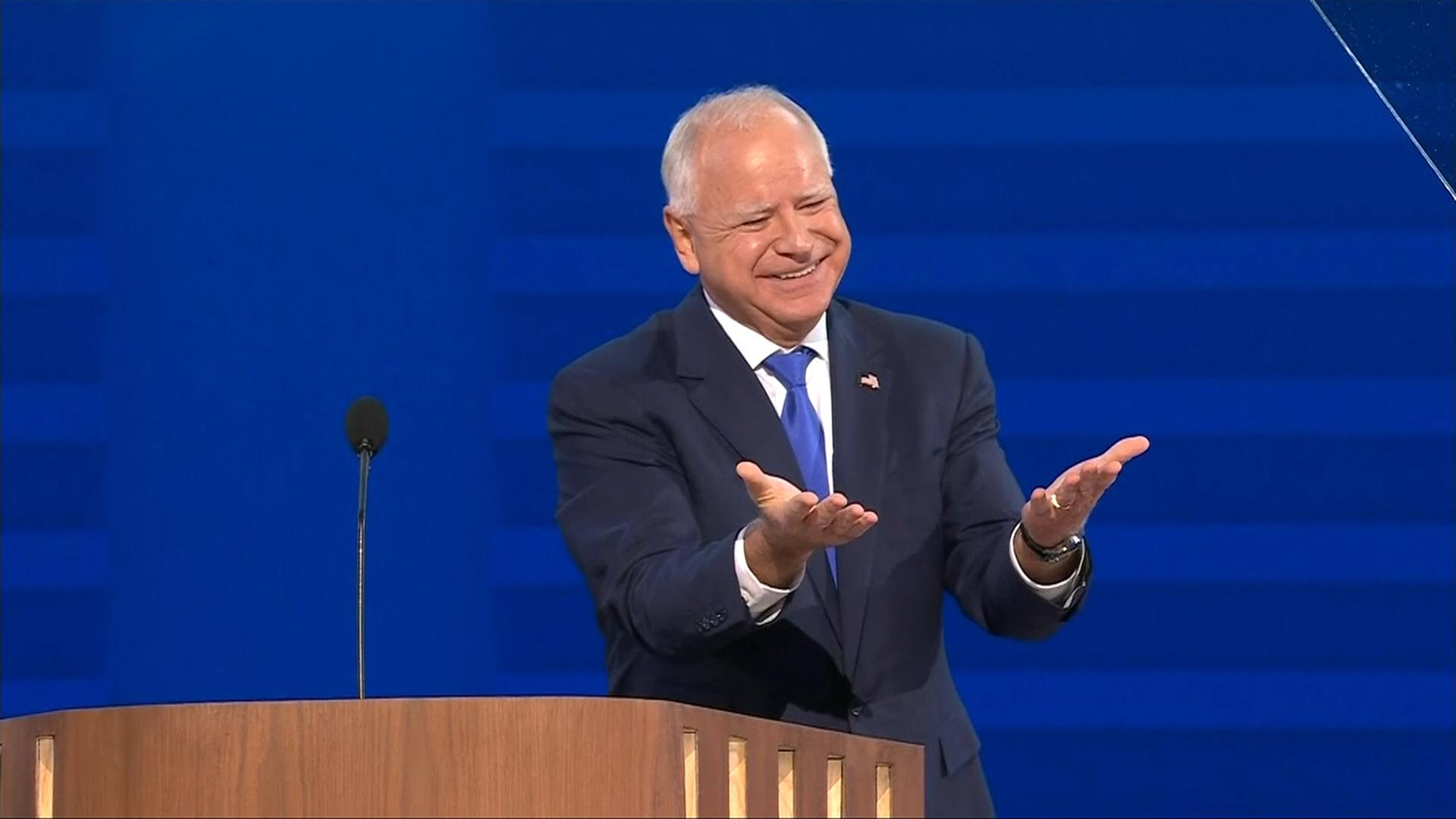 u. a. Rede von Tim Walz (Designierter US-Vize-Präsidentschaftskandidat Demokraten) beim Parteitag der US-Demokraten