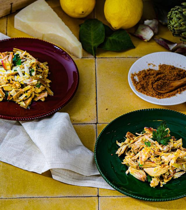 Stefania Lettini präsentiert ein Rezept für einen frischen Artischockensalat. Abgerundet wird das Ganze mit Pecorino Romano DOP und einem Hauch frischer Zitrone.
