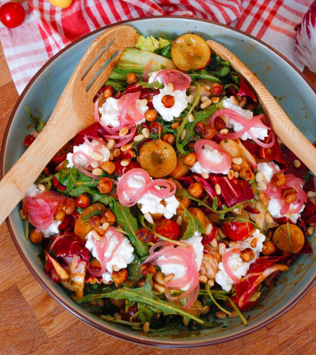 Herzhaft und fruchtig - eine unschlagbare Kombination. Mario Kotaska kreiert einen mediterranen Salat mit Mirabellen und knusprigen Honig-Kichererbsen mit einem würzigen Dressing.