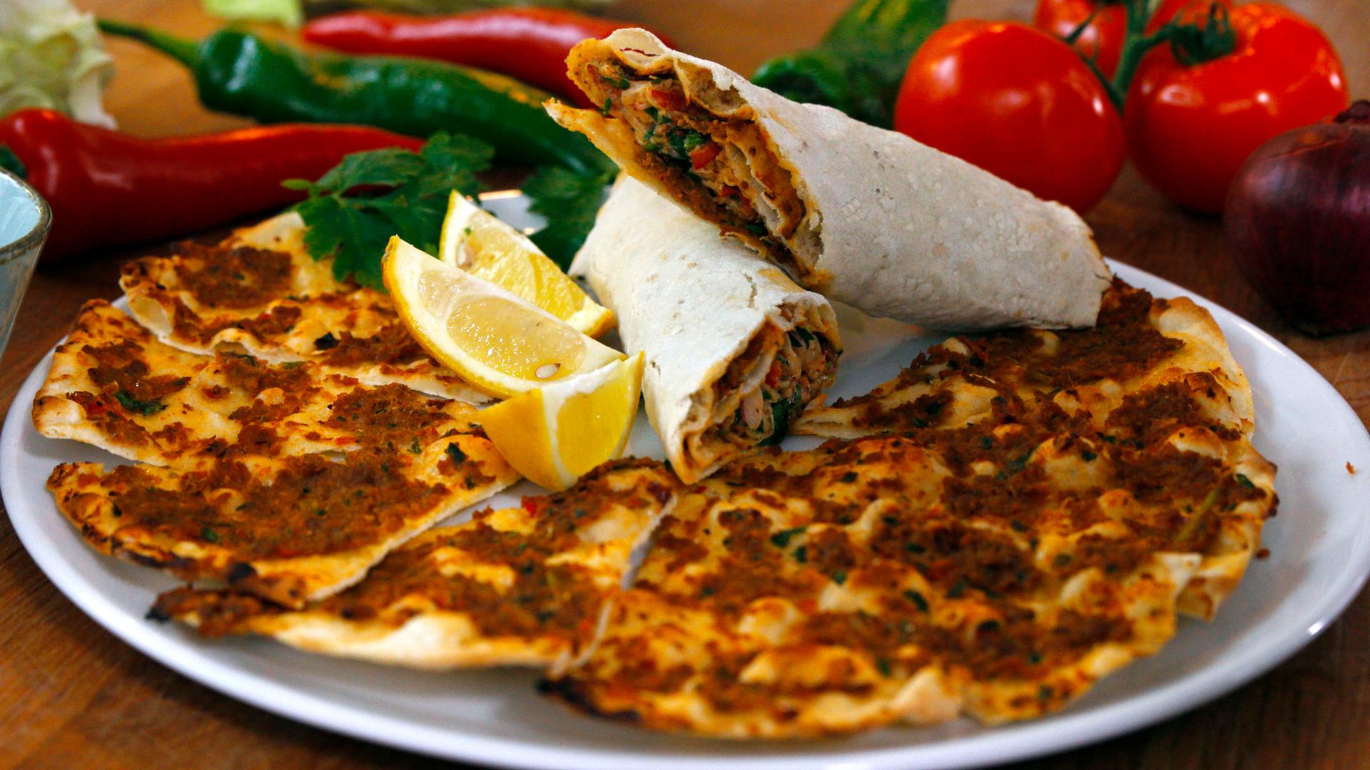 Mario Kotaska widmet sich einem Klassiker der türkischen Küche. Die türkische Pizza besteht traditionell aus einem Fladen, bestrichen mit würzigem Hackfleisch und mit frischem Salat belegt.