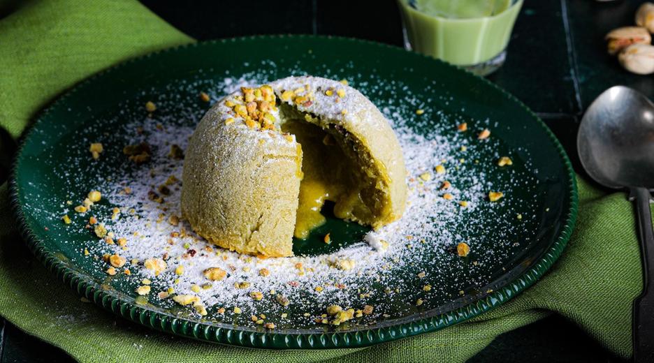 Unsere Expertin für italienische Kulinarik, Stefania Lettini, bereitet einen lauwarmen Kuchen mit flüssigem Pistazienkern zu. Den sogenannten Vulcano di Pistacchio. Viel Spaß beim Nachbacken!