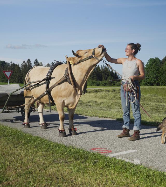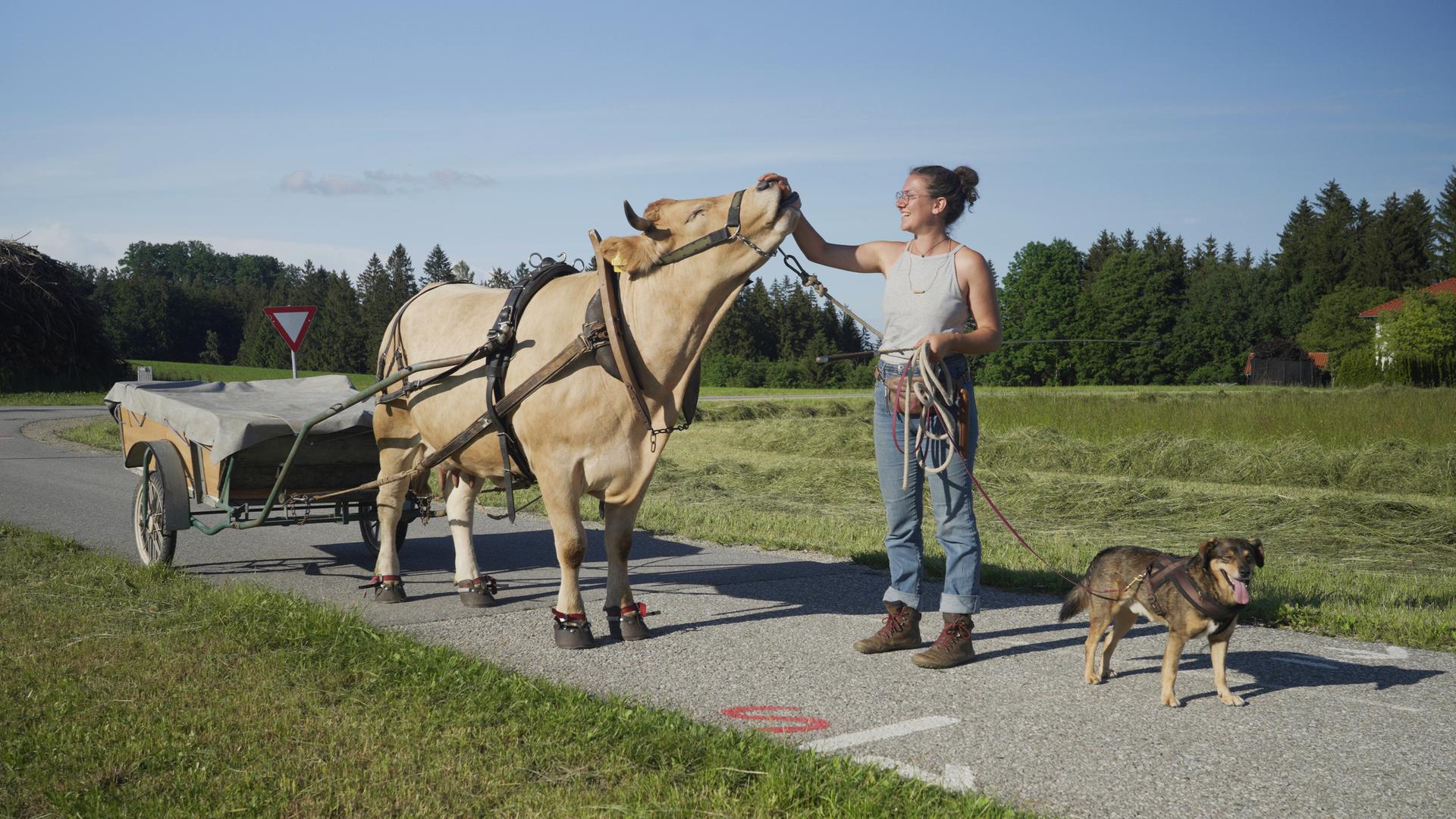 Frau, Hund und Kuh wandern auf Landstraßen, übernachten auf Höfen, bei Freunden und Fremden. Doch die Suche nach Inspiration und innerer Ruhe läuft anders als erwartet. Ein Film über das Erwachsenwerden, über Verantwortung und eine ungewöhnliche Freundschaft.