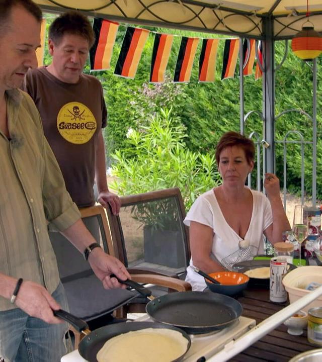 Kutsche statt Wohnmobil. Am Tennsee tauschen Gerd und Ursel ihre über hundert PS gegen zwei Pferde. Sie lassen ihren luxuriösen Camper stehen und machen eine Kutschfahrt in die Berge. Doch dann soll Gerd auch hier die Zügel übernehmen. Mexiko-Feeling im Südsee-Camp. Susanne und Christian wollen mexikanisch kochen. Passend zum WM-Spiel der deutschen Mannschaft. Tortillas und Guacamole. Alles mit frischen Zutaten selbst zubereitet. Wie gelingt das in der Campingküche? Camping im Oldtimer. Emil und Kerstin campen am Bergwitzsee mit einer echten Rarität: einem Qek Junior, gezogen von einem Barkas. In dem Gespann aus DDR-Zeiten darf Enkelin Lea zum ersten Mal auch ohne ihre Mama übernachten. Sitzecke Marke Eigenbau. Peter und Heike bauen sich in Neuharlingersiel eine trendige Lounge-Ecke direkt neben ihren Wohnwagen. Dazu haben die Dauercamper im Baumarkt ein paar Holzpaletten erstanden. Die müssen jetzt nur noch zusammen geschraubt werden. Die 30-teilige Doku-Serie besucht vier Campingplätze in Deutschland. An den Alpen, an der Nordsee, in der Lüneburger und der Dübener Heide.
