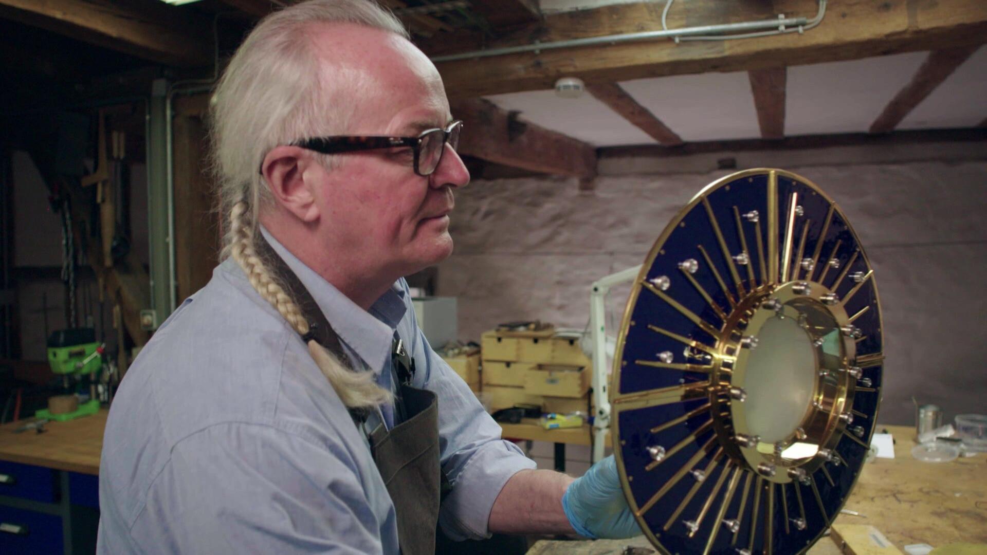 Eine Monstranz für eine Kirche zu bauen, ist ein Ritterschlag für jeden Silberschmied. Die Monstranz gehört zu den wichtigsten kirchlichen Schaustücken und trägt das Allerheiligste, die Hostie. Mit viel Liebe zum Detail geht Hans-Joachim Bleier aus Rottenburg ans Werk. Es handelt sich jedes Mal um ein einzigartiges Stück, das nicht nur schön sein soll, sondern auch funktionieren muss.