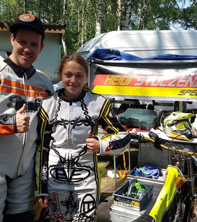 Beim Speedway besteht das Motorrad nur aus Motor und Rädern. Bremse - Fehlanzeige. Dieses abgefahrene Hobby hat Heidi und sie zeigt es Ben.
