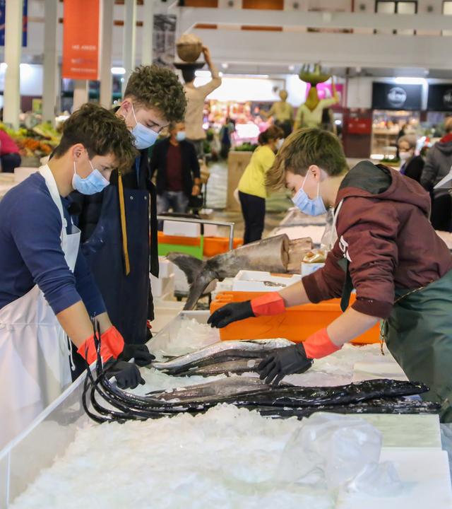 Die fünf Jungs der WG dürfen in ihrer Zeit in Lissabon unterschiedliche Praktika ausprobieren. Dafür müssen Jannis, Leo und Deniz heute besonders früh raus. Es geht zum Fischmarkt.