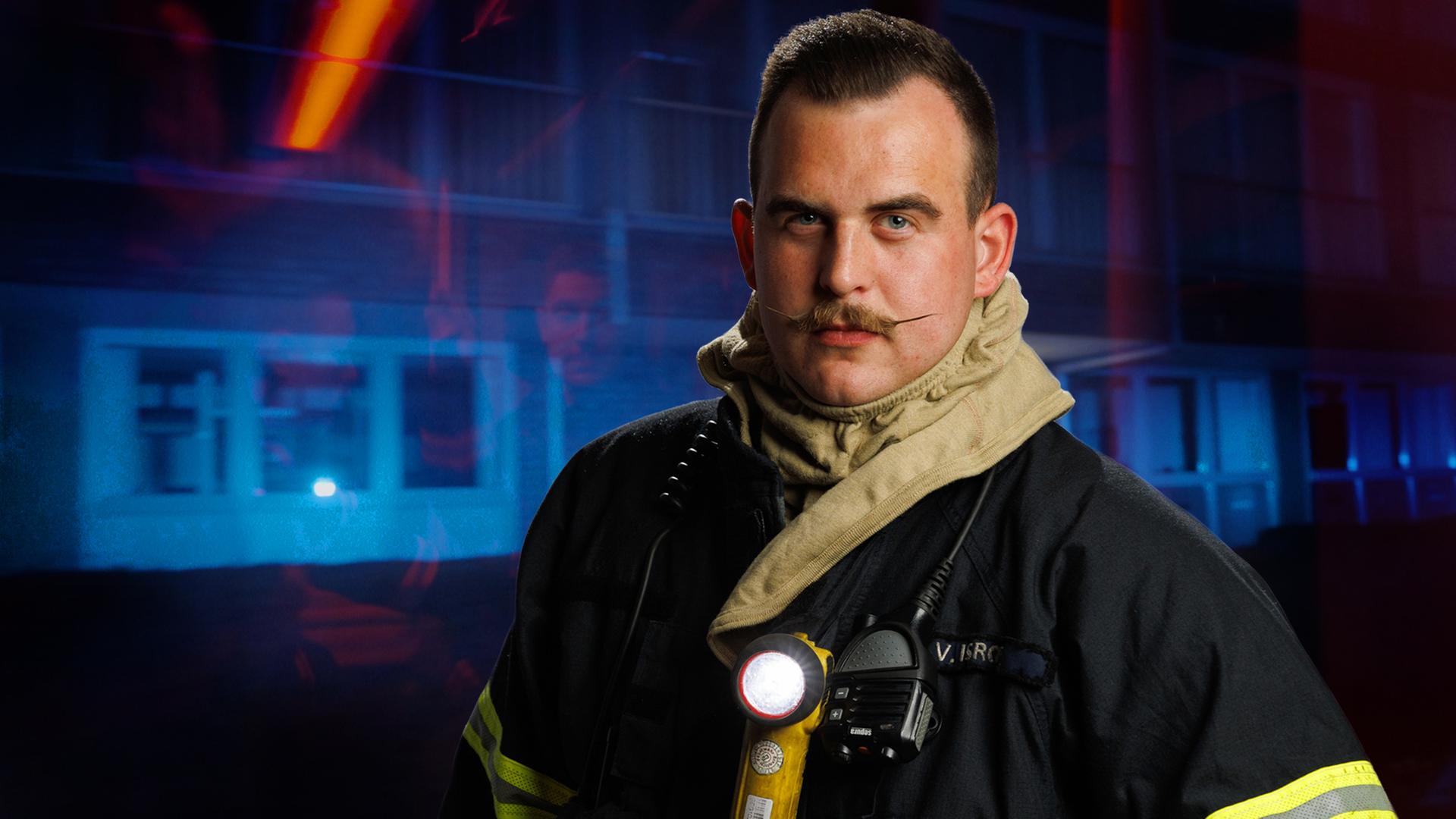 Ein Mann, der kurz vorher eine Operation hatte, reagiert nicht auf Nachrichten. Die Nachbarin ist besorgt. Vincent Isroe von der Feuerwehr Hamburg macht sich bereit, die Tür aufzubrechen. Ein anderer Notruf lautet: "Mann mit Messer im Mund".