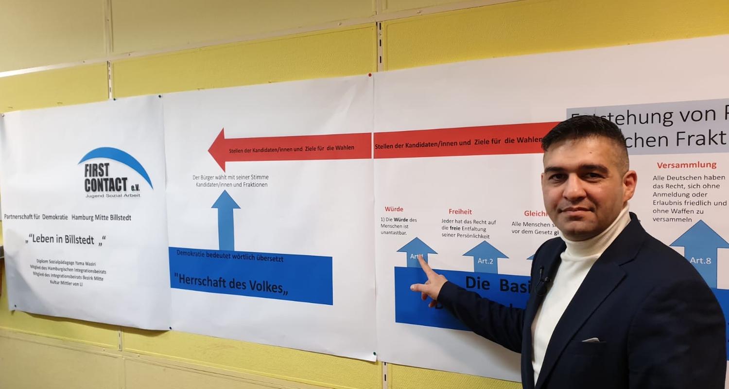 Am 23. Februar sind in Hamburg Bürgerschaftswahlen. Auch viele Menschen mit Migrationshintergrund sind wahlberechtigt, wählen oft jedoch nicht. Der Sozialpädagoge Yama Waziri will das mit seinem Projekt "First Contact" ändern.