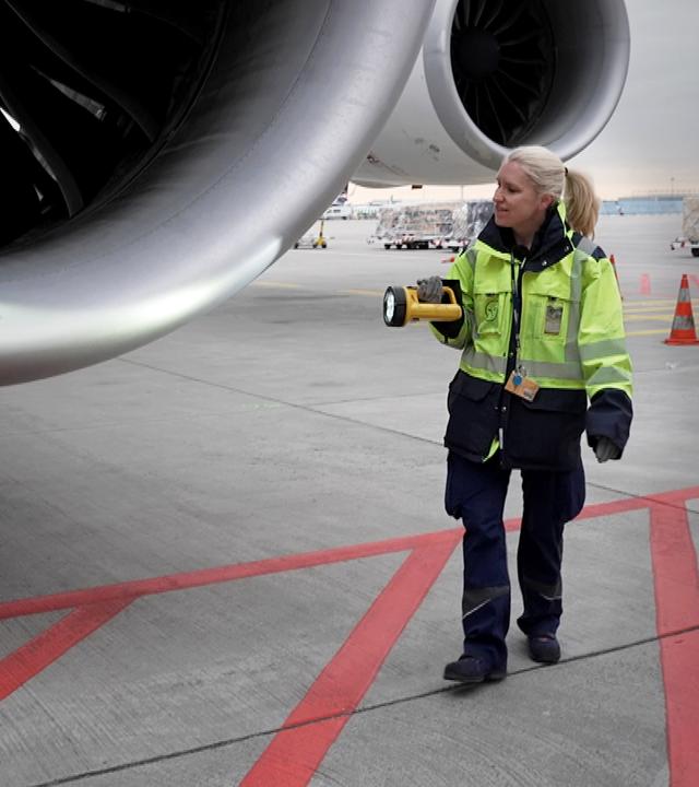 Die Flugzeugmechaniker kontrollieren jeden Flieger, der den Frankfurter Flughafen verlässt. Ein Jumbo muss schnell weiter, aber eine Bremse und ein Reifen machen Probleme.