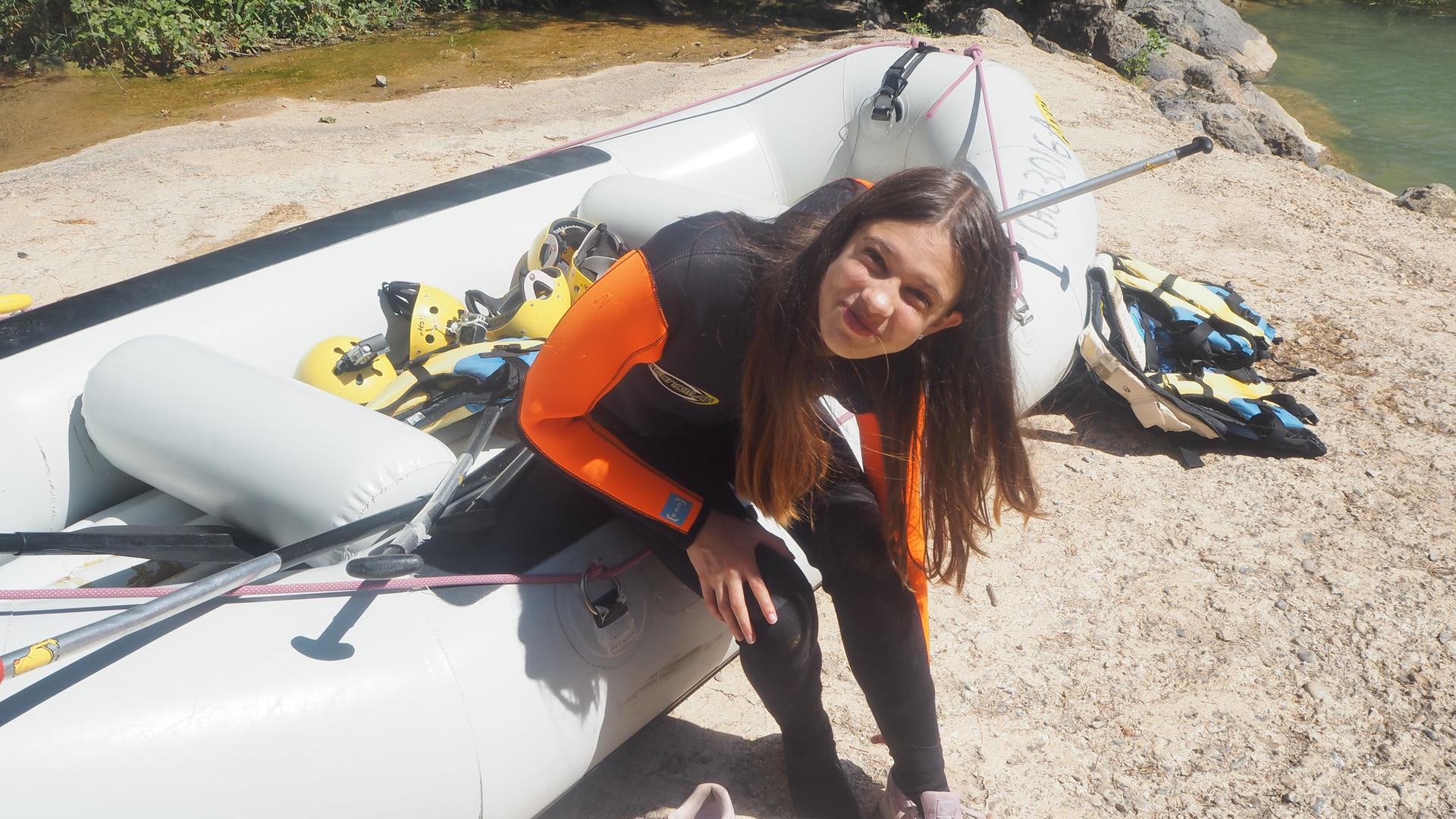 Nach der Nacht im Zelt machen die Mädchen eine Wildwasser-Fahrt.