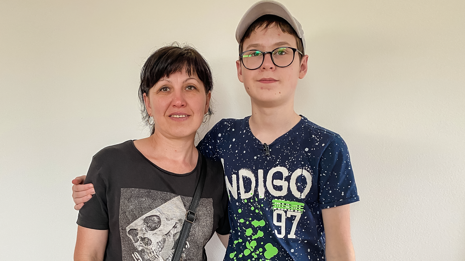 Oleksii und seine Mutter, die aus der Ukraine geflüchtet sind