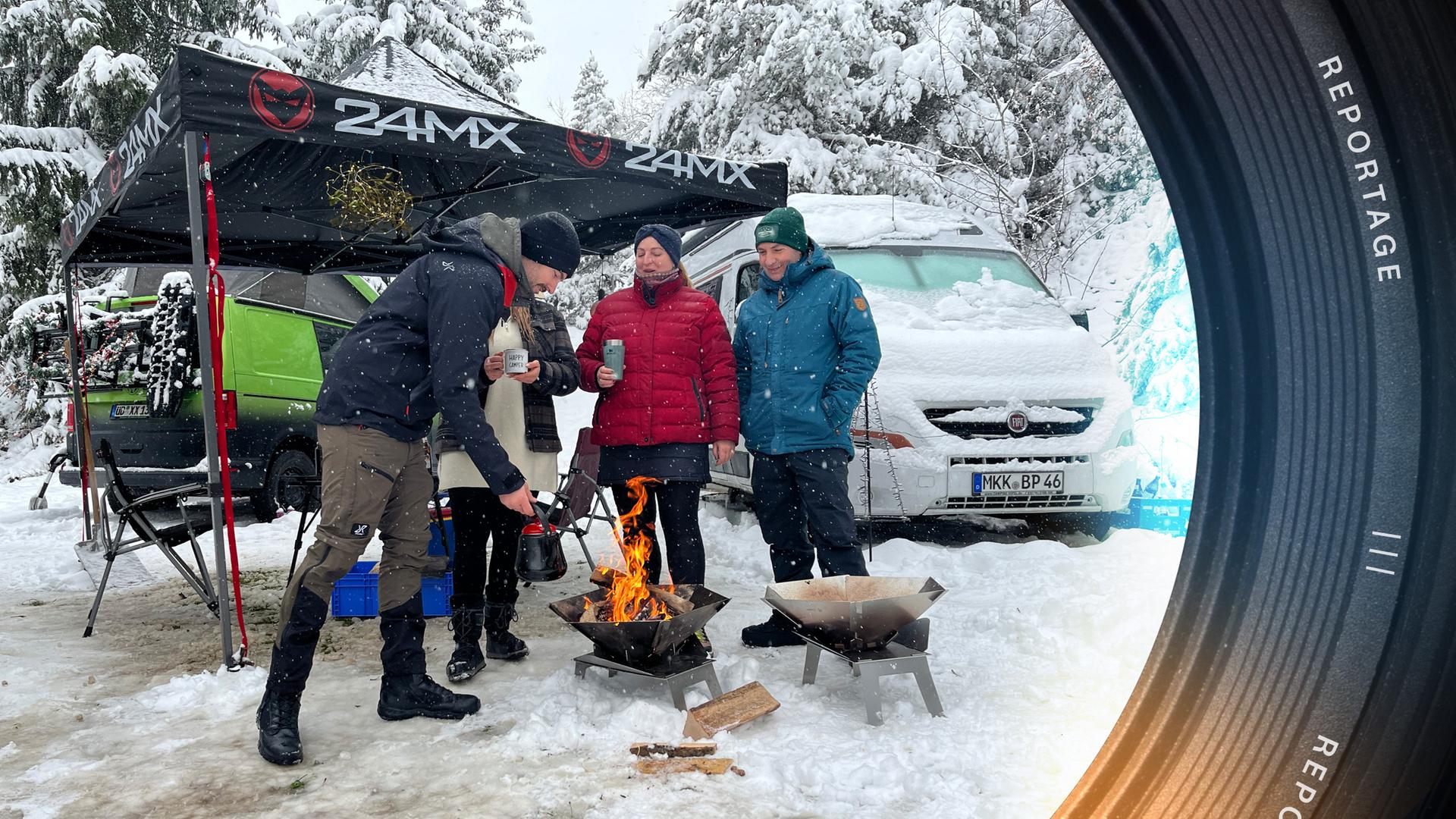 Rund 120 Fahrzeuge kommen zu einem Wintercamping-Festival in den Bayerischen Wald bei Wiesenfelden. Der Platz bietet nicht viel Komfort, aber das stört dort niemanden. Stattdessen schätzen Teilnehmer wie Steffen Krapf das Community-Feeling: "Wir sind offen für Reisetipps und Erfahrungsberichte der anderen, für Unterhaltungen und Party am Lagerfeuer." Angereist kommen die Vollblutcamper mit Wohnmobilen, umgebauten Unimogs und Pkw mit Dachzelt. Doch im Winter 2023/2024 gibt es ungewöhnlich viel Schnee in kurzer Zeit. Alle packen mit an beim Freischaufeln. Doch wer im Zelt campiert, hat jetzt ein Problem.