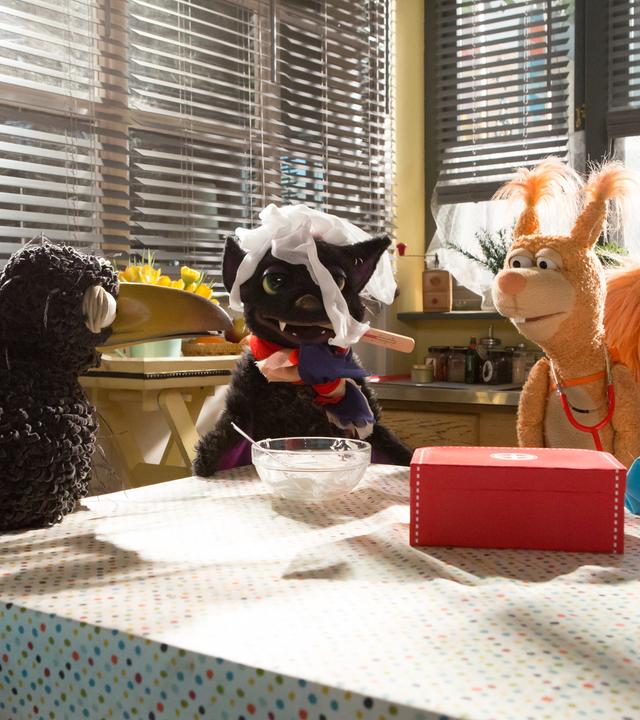 Rudi und Ella sorgen sich um Vampi. Ihr ist ein Ball auf den Kopf gefallen! Seitdem spricht sie ganz komischen Käse-Murks.
